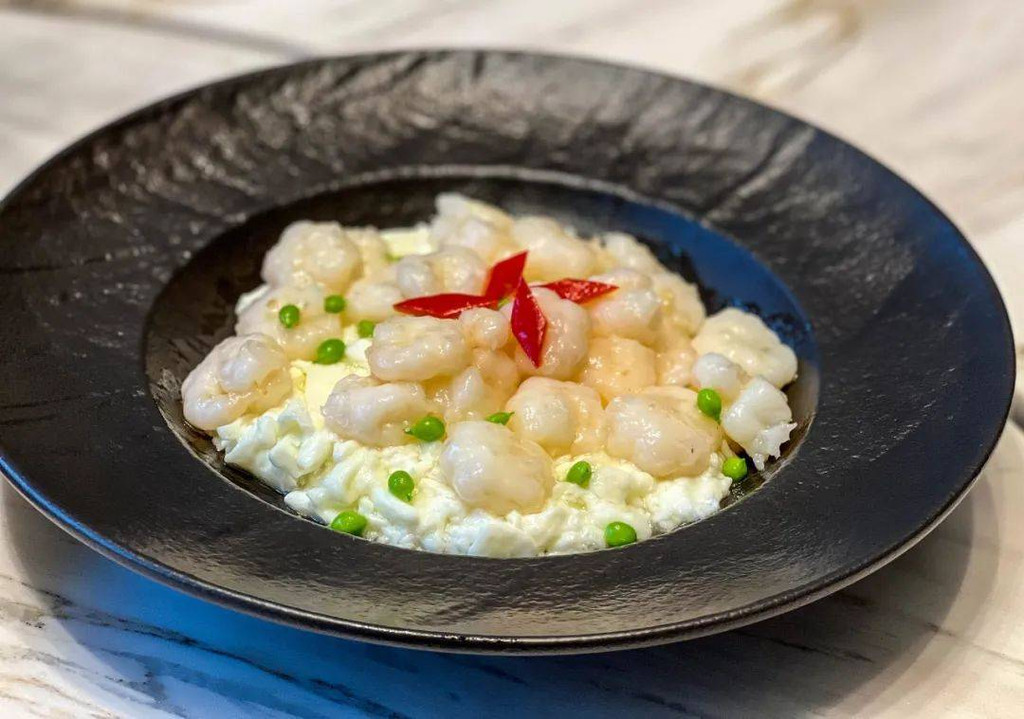 嫩滑的蛋白与透明Q弹的虾仁无论在口感还是造型上都是绝配。