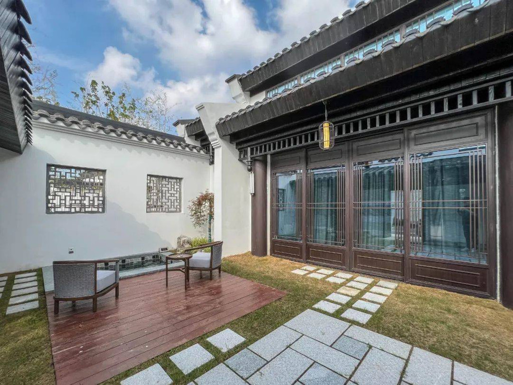 别墅共13套,均为独门独院。白墙黑瓦,浓郁的江南风格,在园林的掩映中,静等客归。
