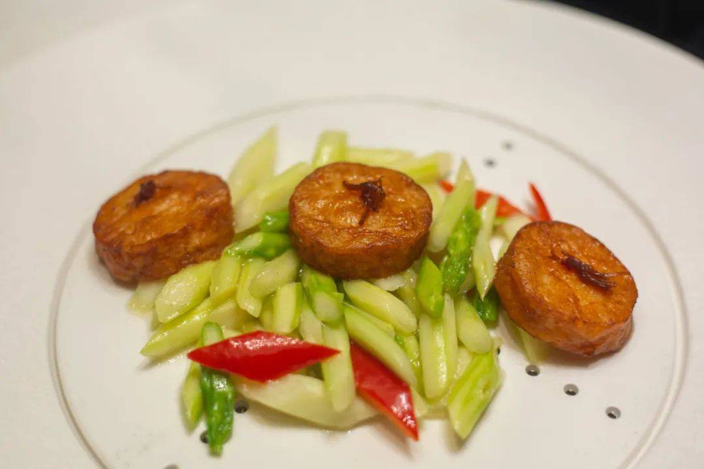 突破用蜜瓜搭配火腿的西式做法选用江南特产茭白,清香爽口,很好地中和了火腿的咸鲜。