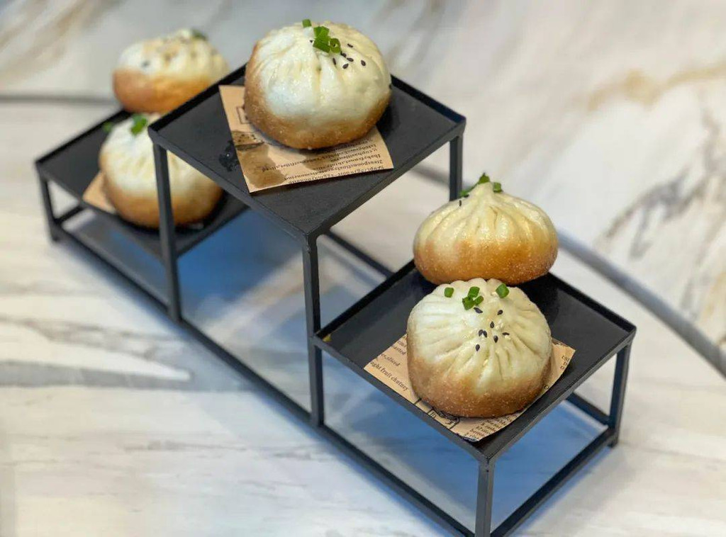 非常类似上海生煎包的做法,有少许汤汁,肉质非常紧实,肉馅上缀以整颗文蛤肉,增加了鲜美度,口感也更丰富。