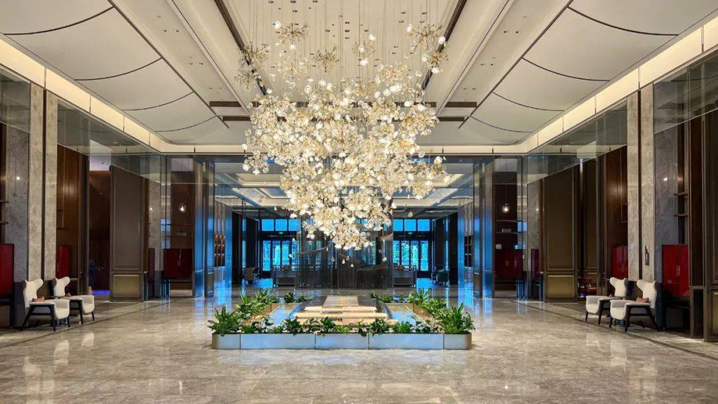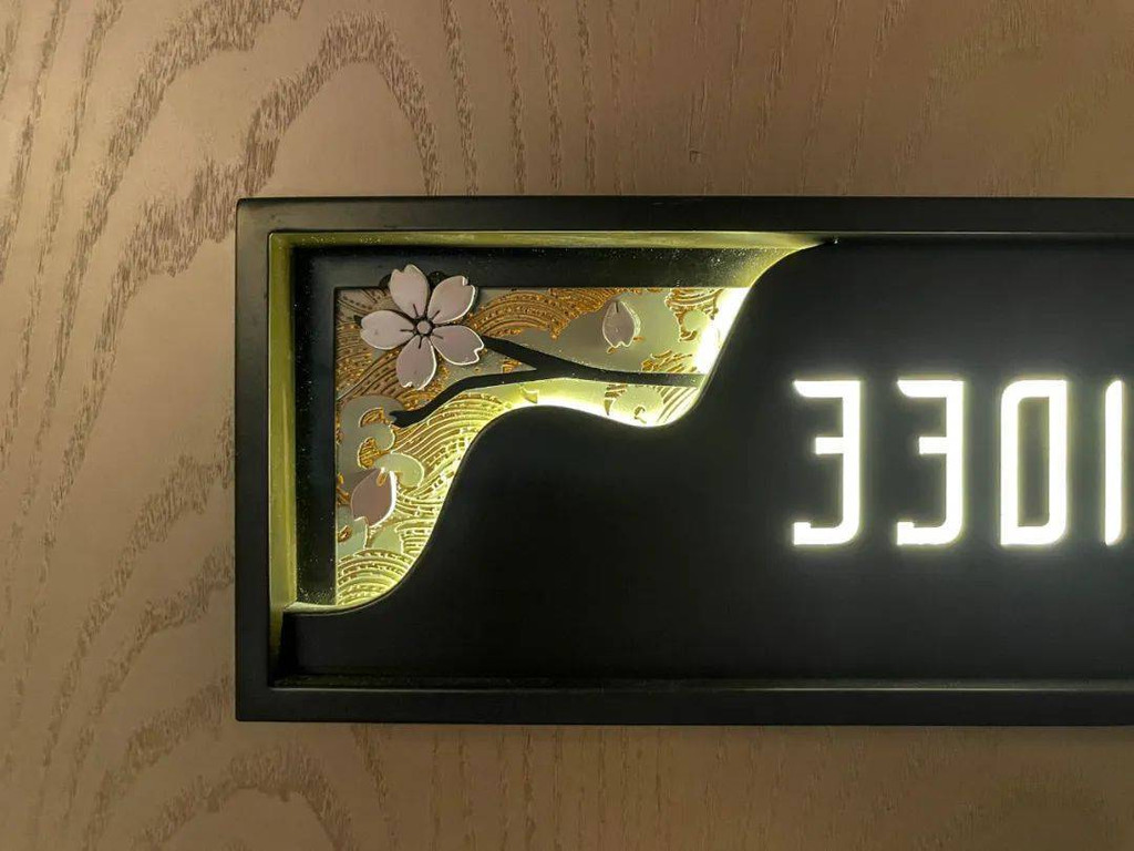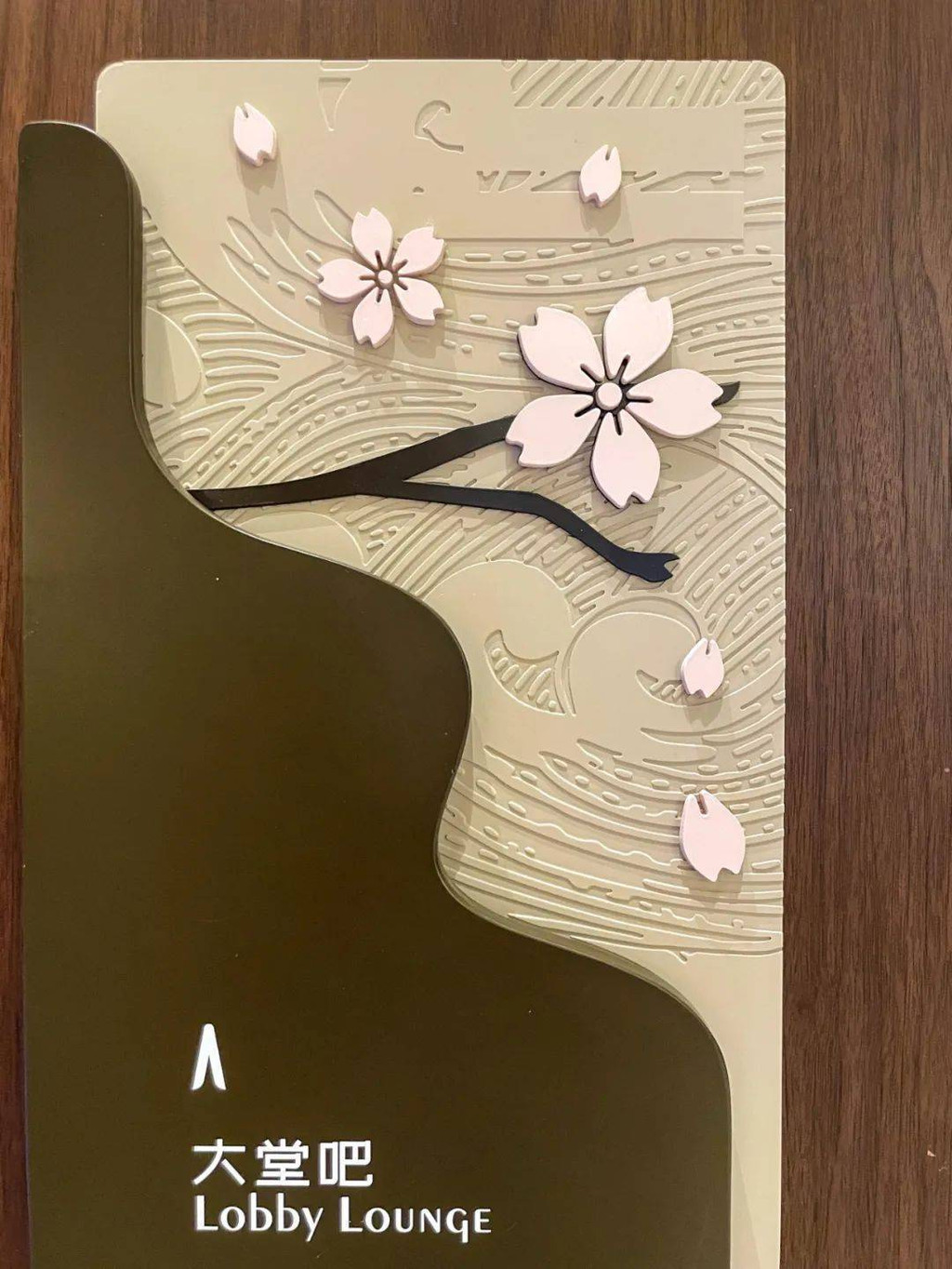 这样的设计细节,在酒店里还有其他方面的体现。比如,贯穿于整个酒店的主要元素樱花。樱花作为大洋湾景区的核心景观,是最有特色的代表元素之一。于是,每间客房的房号牌,酒店内所有的指引牌,都是以樱花作为设计元素。当然,还有大堂中央,所有人都会不禁瞩目的装饰吊灯“樱花盛开”。