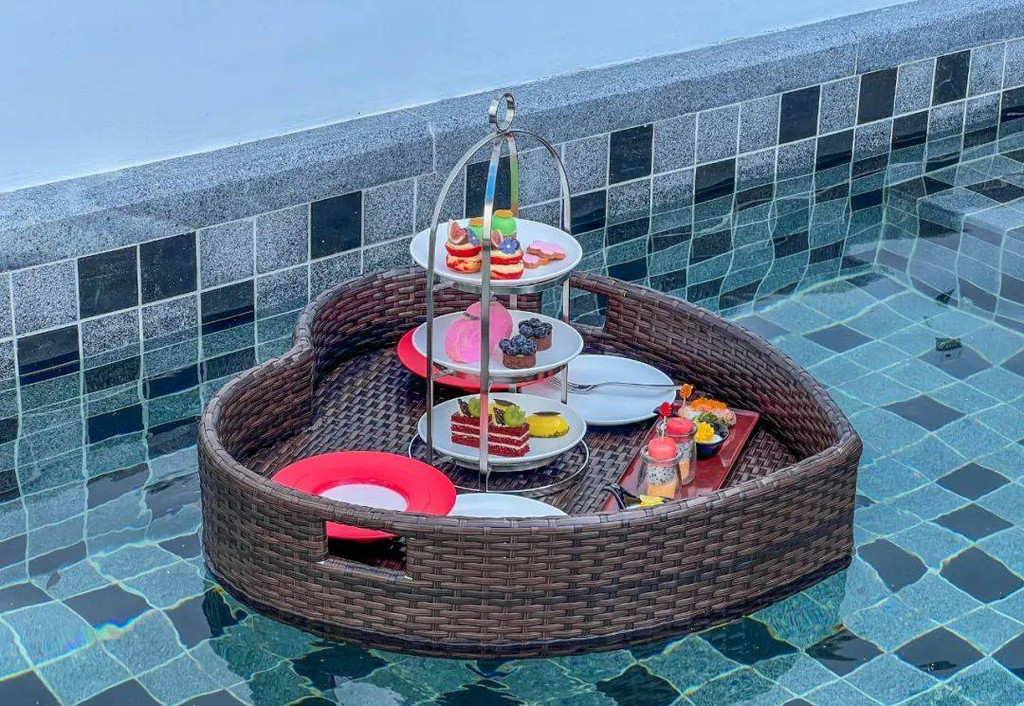 更妙的是,现在酒店还为别墅房型的客人提供漂浮下午茶服务,这可是原本只能在海岛度假酒店享受到的待遇啊!不尝试一下,真的有点对不起住这套别墅了。