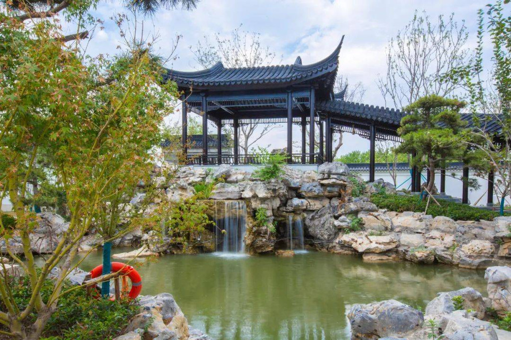 整个后花园围绕着别墅区和客房翼铺陈开来,湖泊、草坪、九曲廊、亭阁、假山、瀑布等等,江南园林拥有的元素在此都能觅到。叠石理水,移步换景,亭榭廊槛,宛转其间,若能在此听上一曲《游园惊梦》,更是极好的。