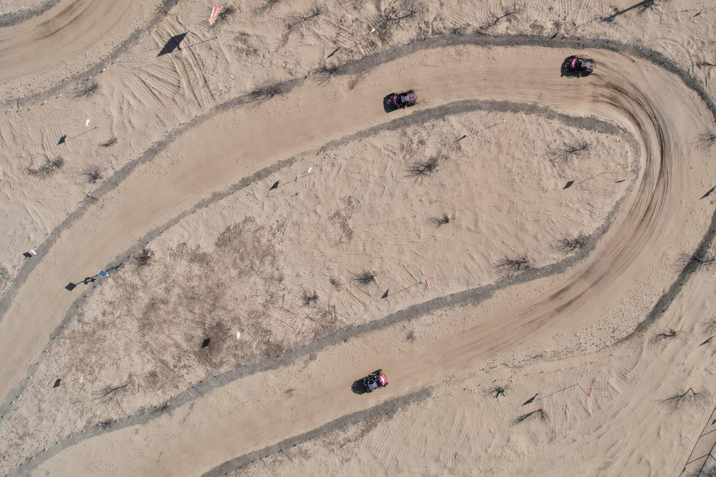 骑着越野车在沙地里穿行,在一次次速度与激情的拼搏中突破自我。或单人模式独自漫游在林间小道中穿行;或组队竞速,和好友开启一场安全的速度对决。俯瞰的时候这个赛道正好是胡公石先生笔下的“福”字。