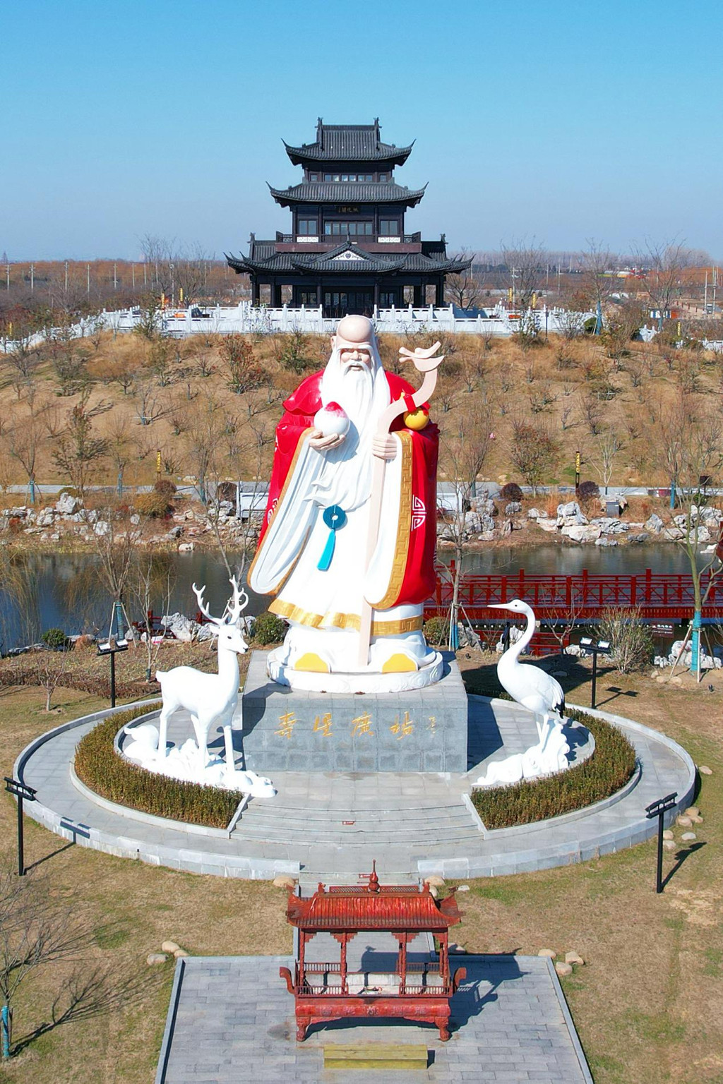 龙冈桃花源景区遍种桃树,桃花被寓意为长寿之神,桃子更是长寿之果。寿星广场上高约13米的老寿星,手捧仙桃,笑容可掬,老寿星两侧是寓意着健康、长寿、吉祥鹤和鹿。