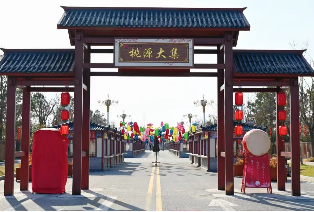 早上抵达盐城,直奔龙冈桃花源。首先去桃源大集感受热闹的氛围。这里有大红灯笼、喜庆福字、琳琅满目的货品和高亢嘹亮的叫卖声,充满了“烟火气”,传统与现代,多元文化在此交相辉映。