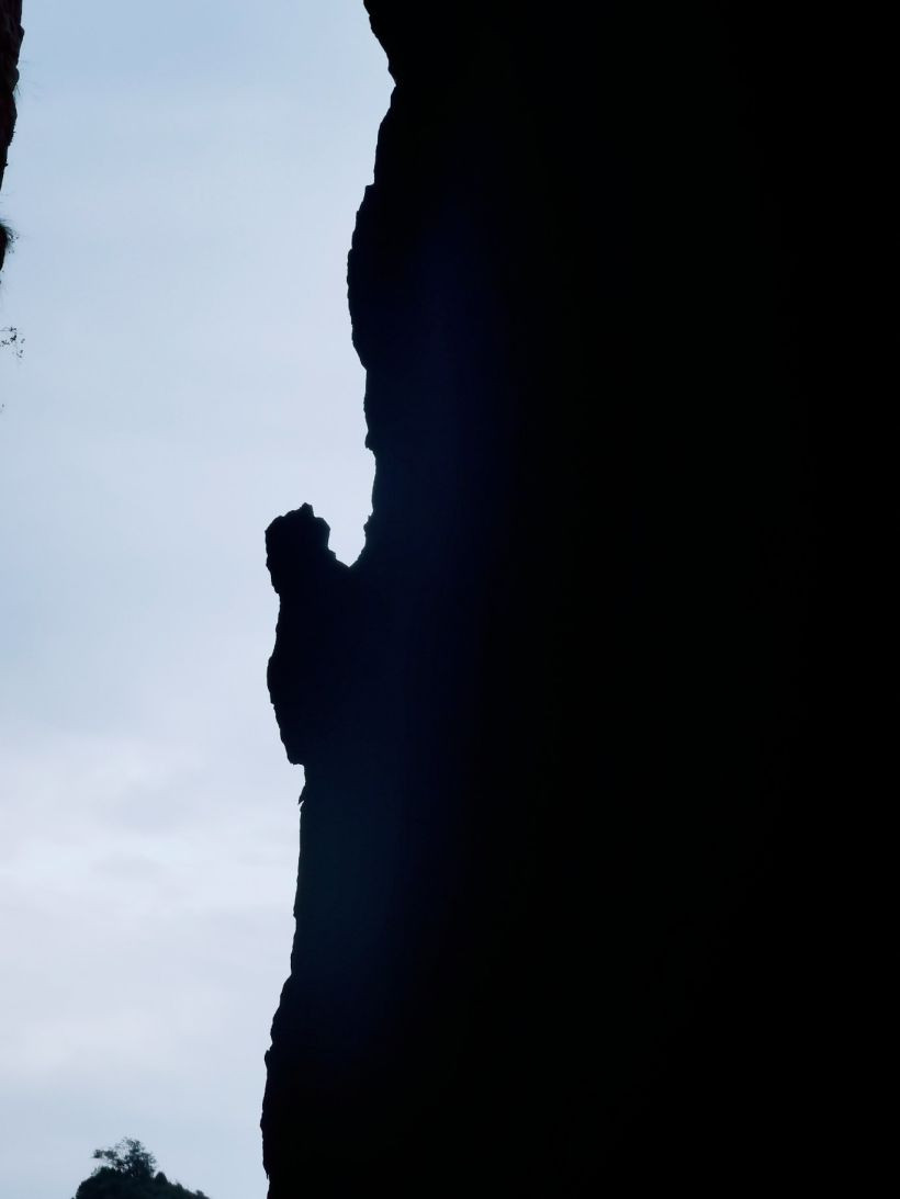 感觉看得更清楚了,就是一块石头,通过移步换景,可以可以看出六七个样子,随着到不同的地方,导游的讲解可以看到像梳妆打扮的美人,像帆船、像剪刀,像啄木鸟,门口的千佛岩最为壮观,