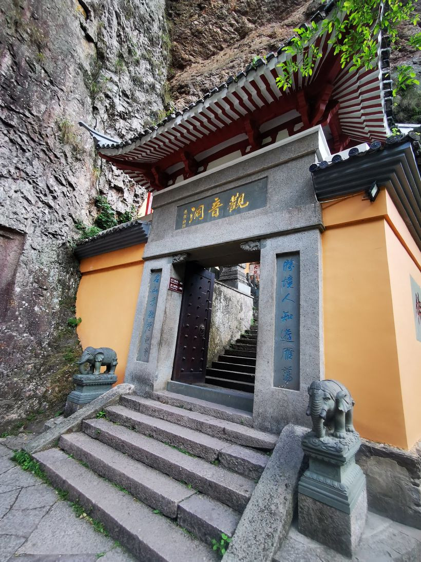 洞穴之中修建有寺庙~~观音寺,寺庙建有9层佛塔,