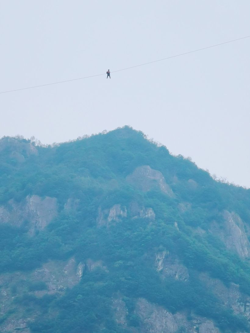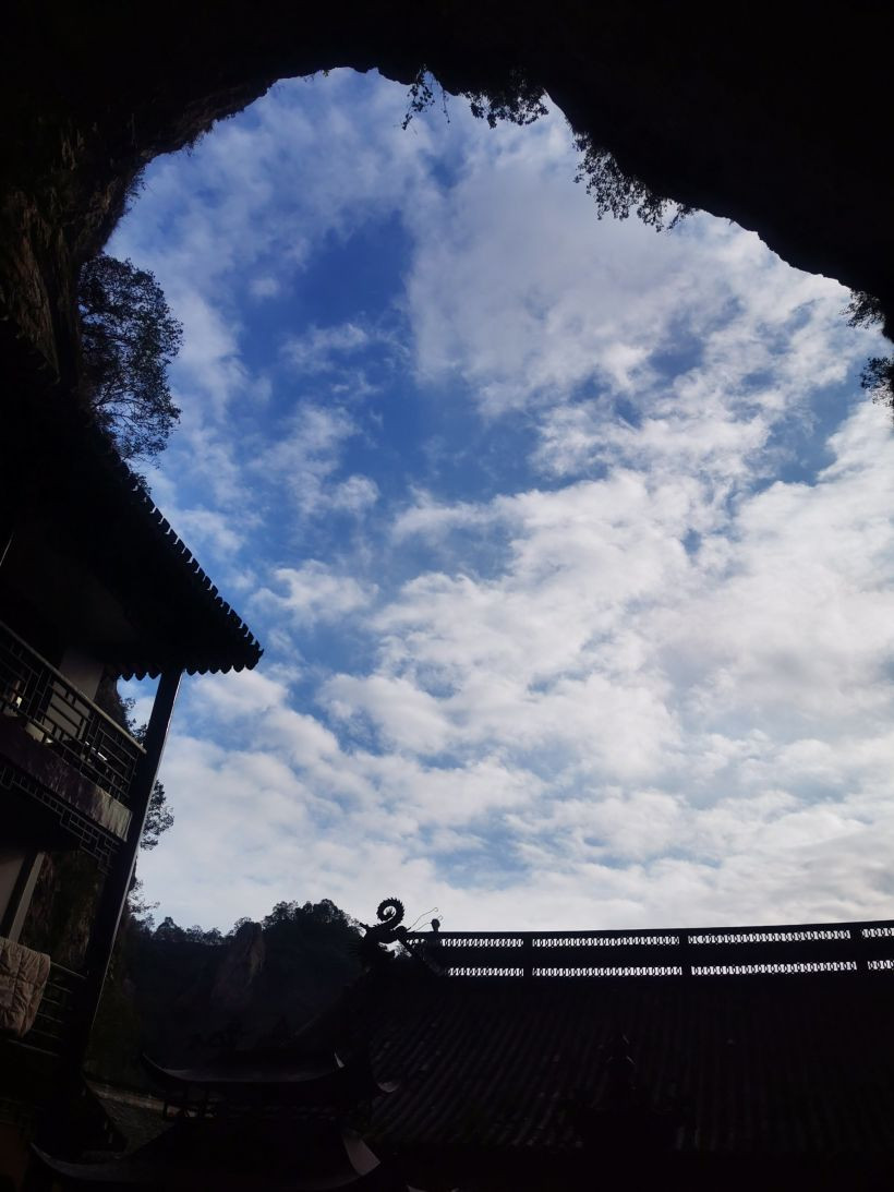 在比较平缓的地方,休息一下,可以抬头看灵岩飞渡,
