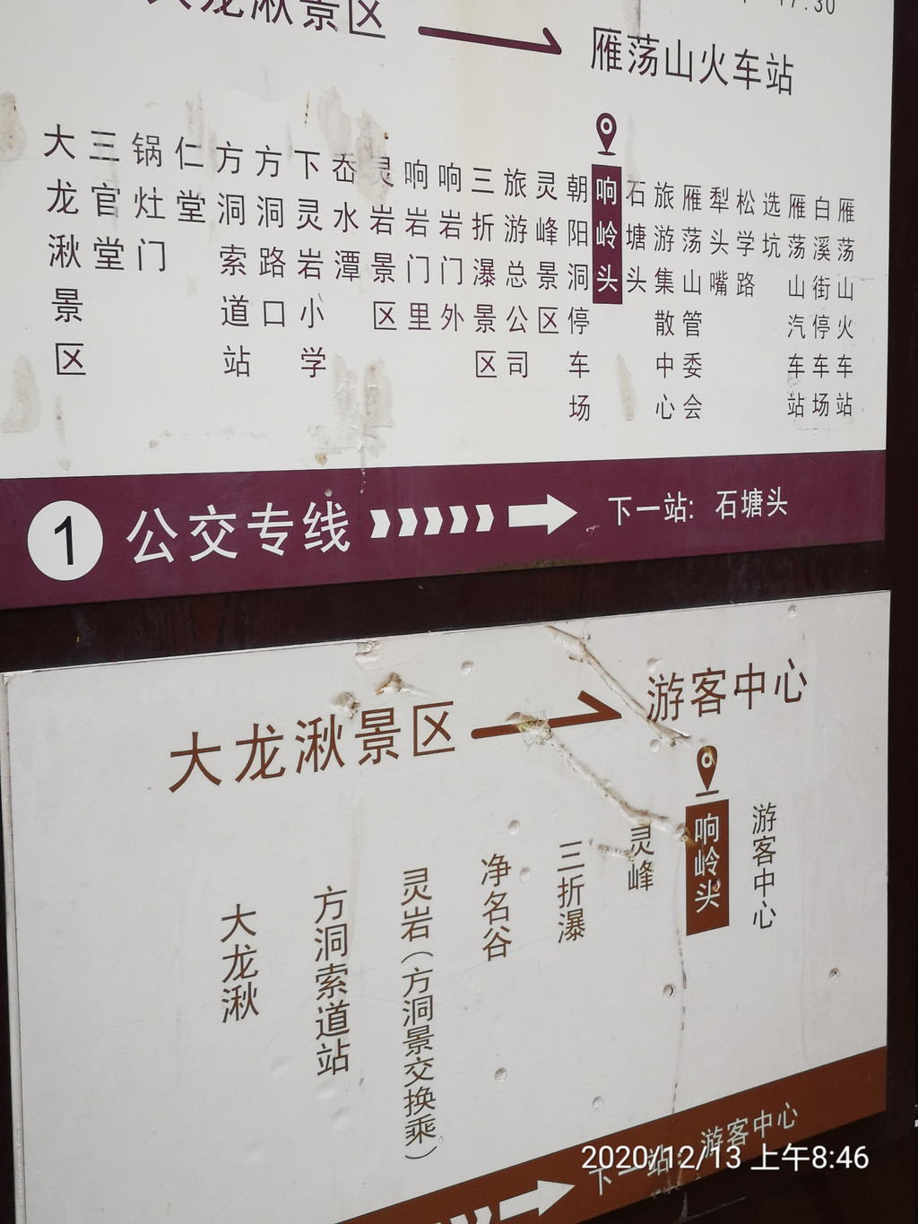 巨石外,有车站。一辆电瓶车驶来,乘客吾一人。驾驶员还下车帮我拉起遮风透明塑料的拉链。得知我中午要去火车站,驾驶员告诉我:别着急,对面车站上车,大面包车,八九站路到火车站,车子很多。一句话,让我心暖。车行五六分钟,到灵峰停车场。