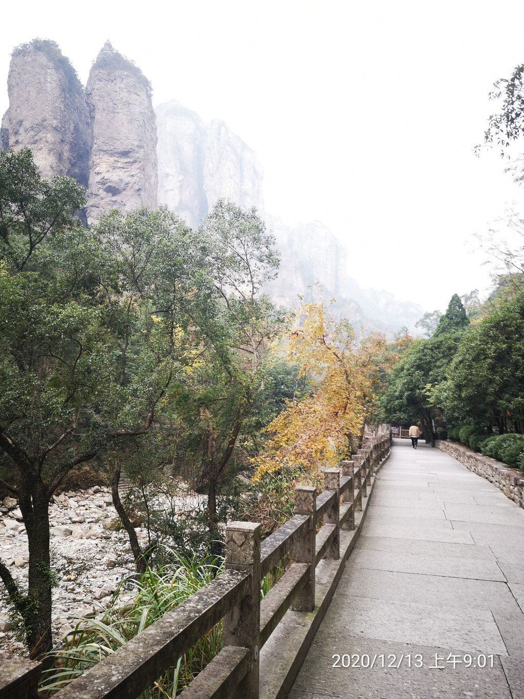 12月13日,大晴,兴冲冲,独自一人乘坐景区免费电瓶车,来到灵峰。1973年新婚旅行雁荡山,印象最深者:大龙湫与灵峰也。拔地而起的天柱般的石峰似分又合,名曰“合掌峰”,最奇妙者,拾级而登,竟然可以登上隙缝中藏着的一座庙宇,天下奇峰,天下奇庙,一登难忘也。