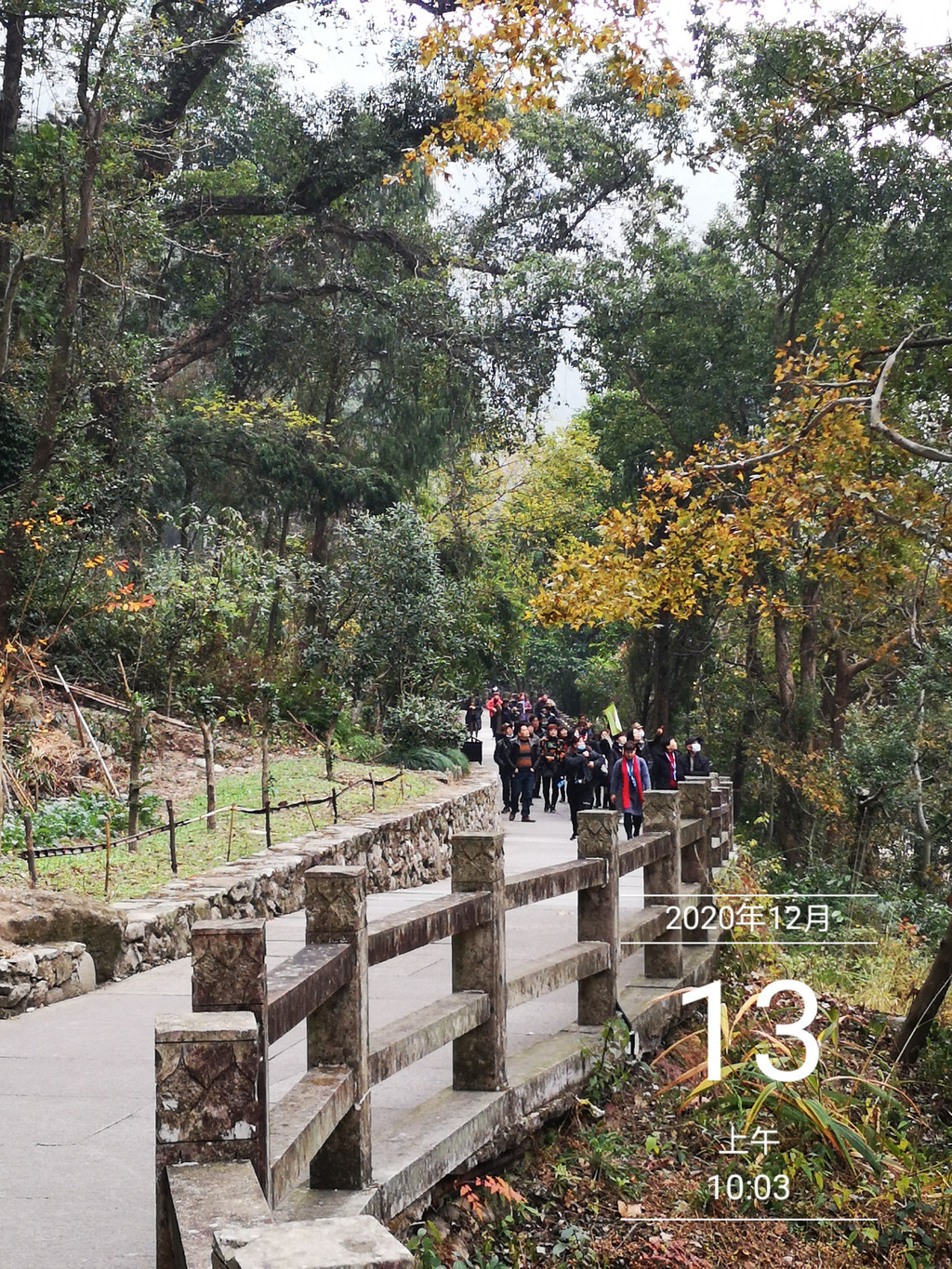 过古桥,石道上迎面走来一队人马,从导游手举小旗看,今日第一个旅行团也。寂静的山道,顿时添了人气!