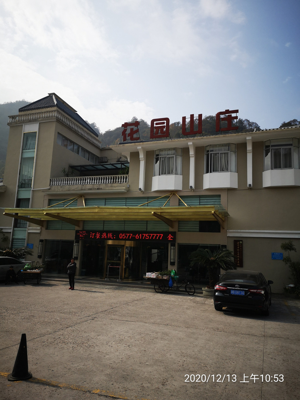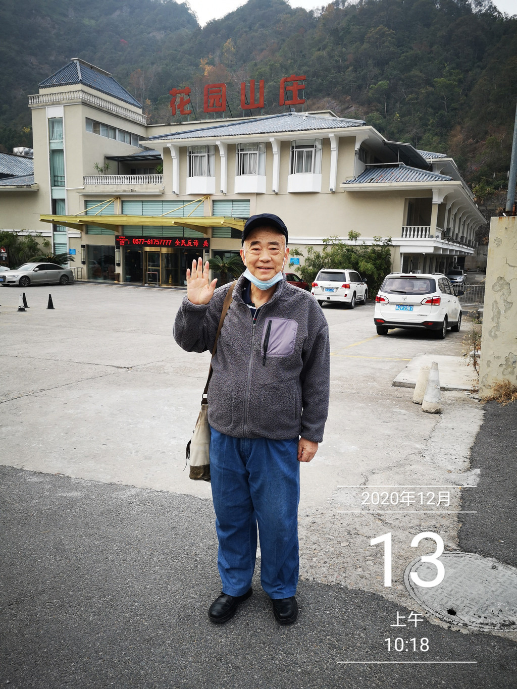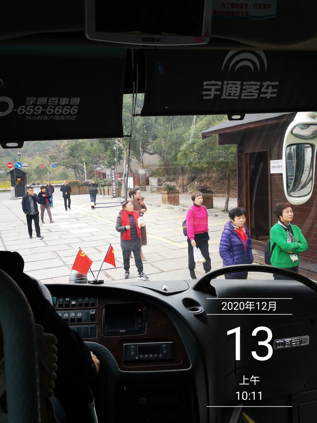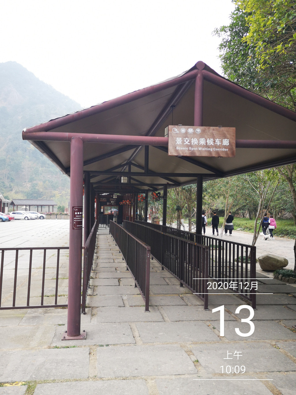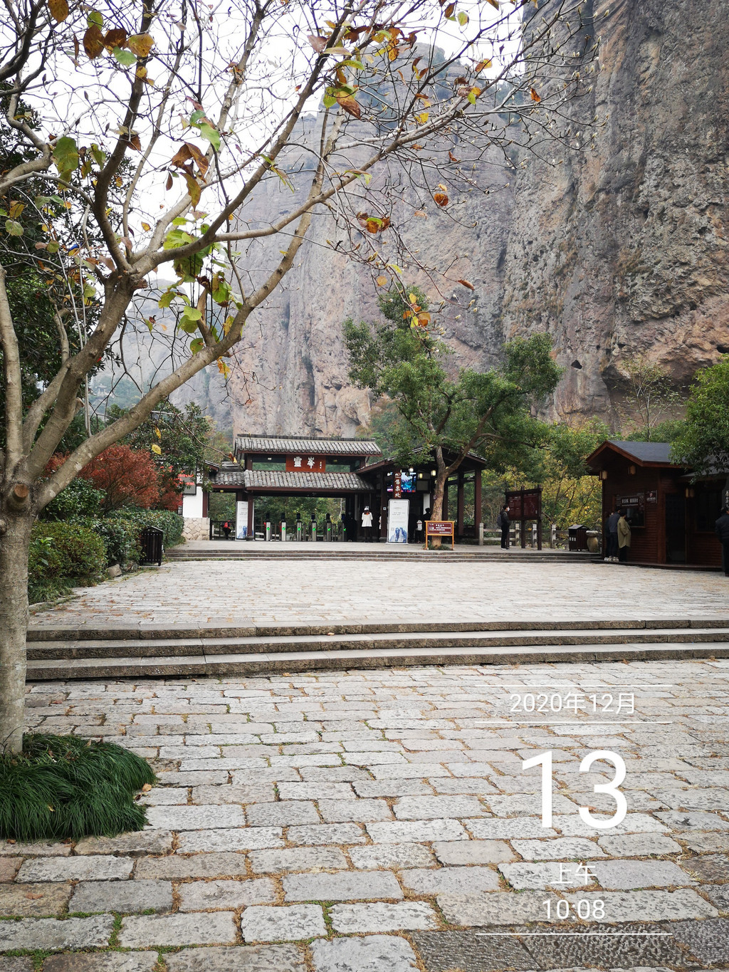 出了大门,不远处,就是车站,果然雁荡山景区的免费交通,车频甚高,眼看着一辆中巴离站,另一辆驶来,上车,10:15分到响岭头站。在门外留影一幅。