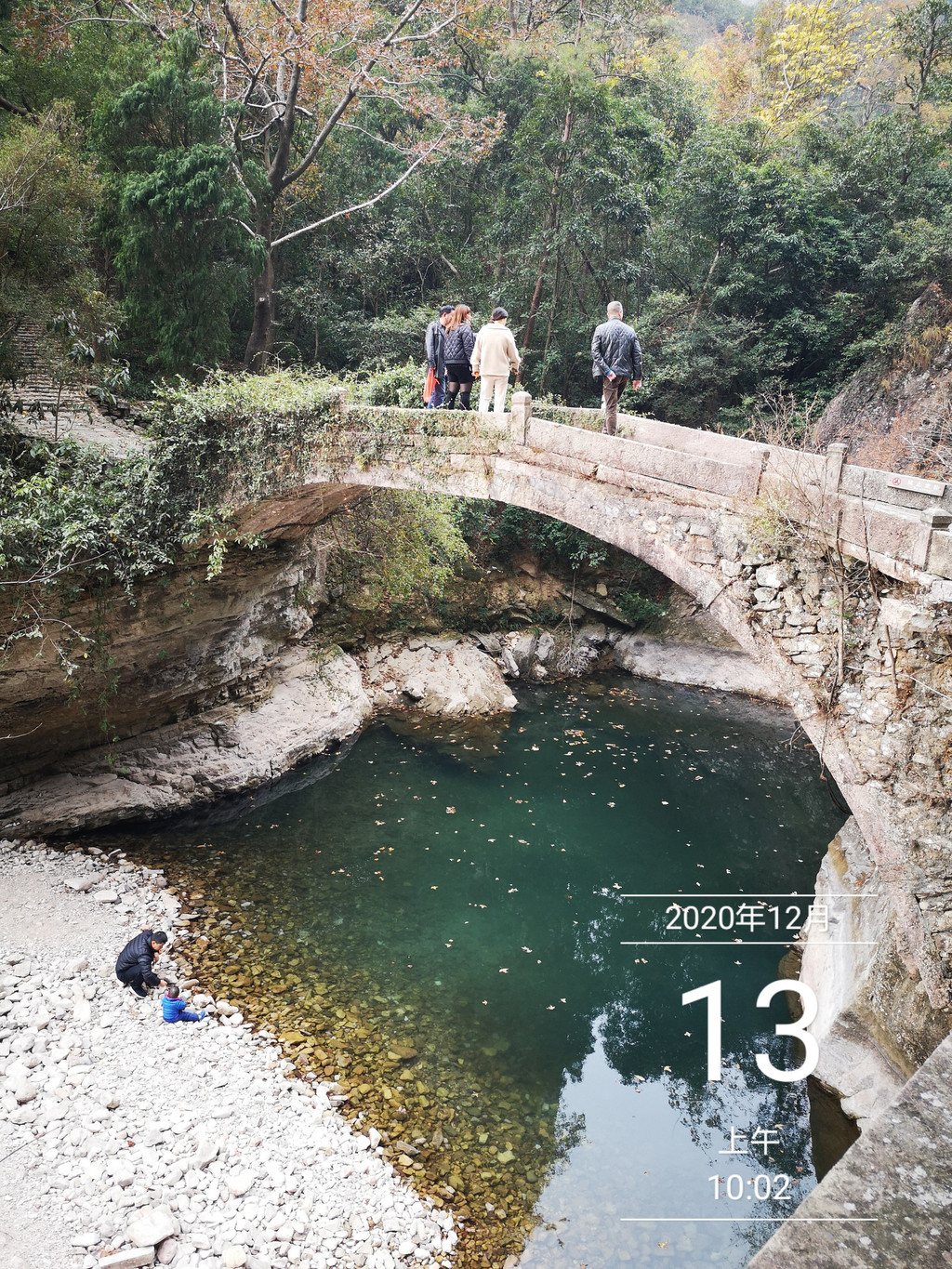 慢慢走过古桥,桥下有积水,形成一个碧潭,枯水季节,碧潭就倍现珍贵!驻观良久而去。