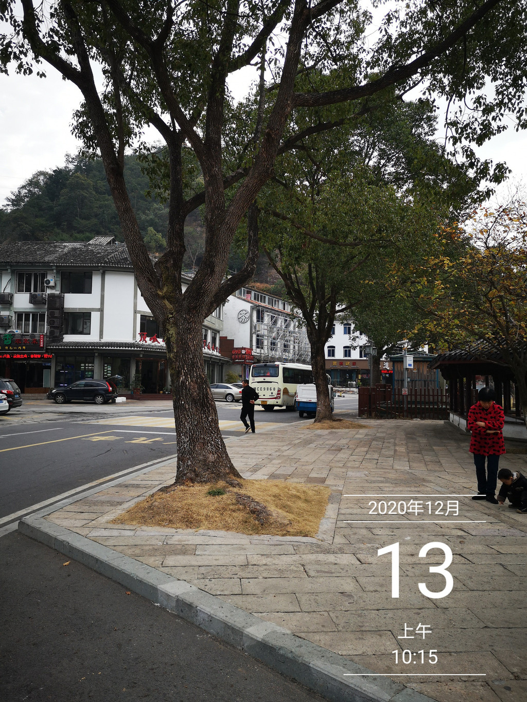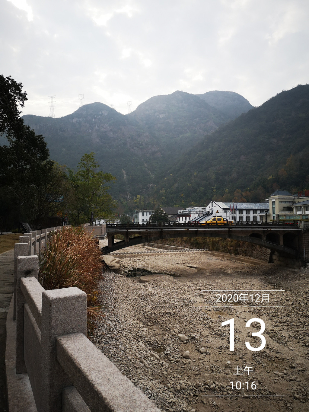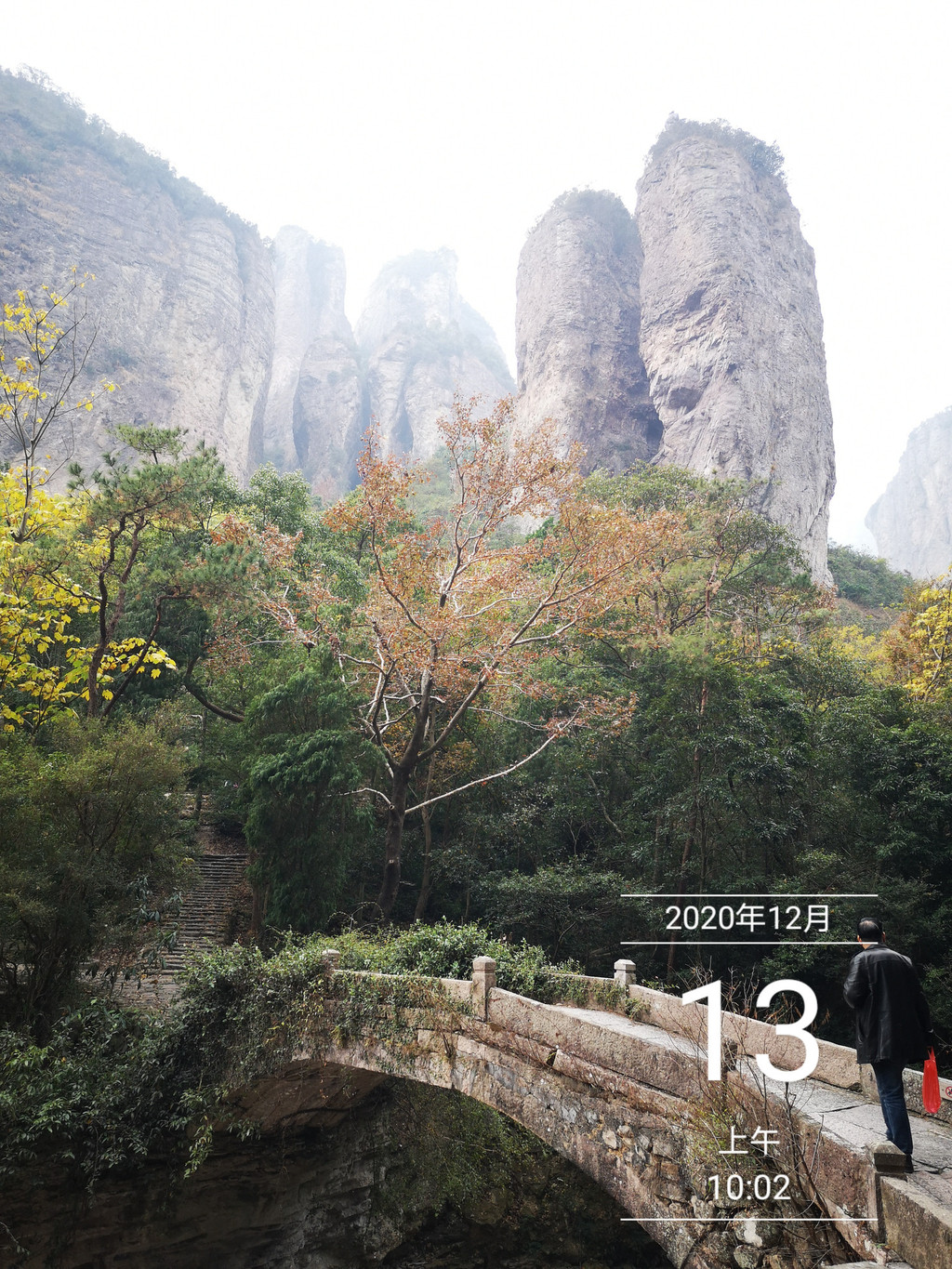 路过一座石桥,看来有点年龄。此刻,古桥的背景竟然是“双峰插云”!美极!47年之前的记忆突然被唤醒:当年27岁的我,与夫人从古桥走过,桥下,流水潺潺。夫人好像感叹一句:小桥流水,就是没有人家!