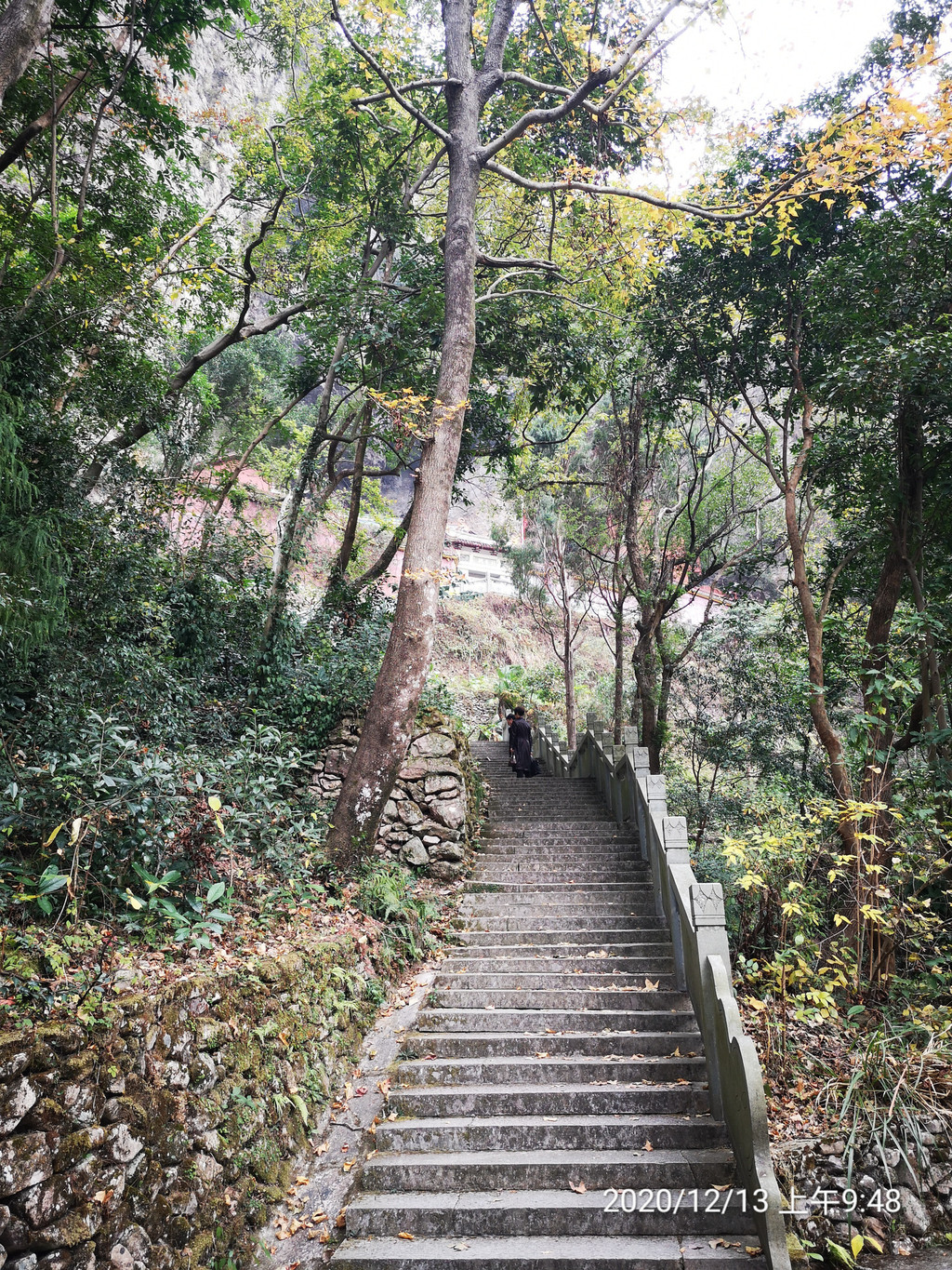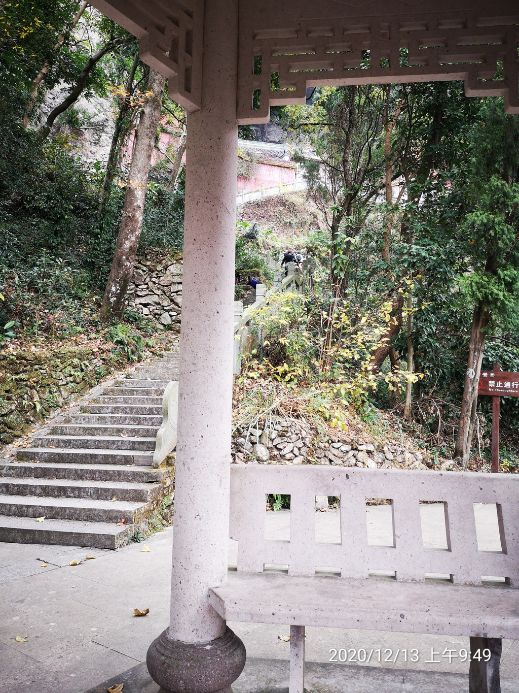 12月13日上午9点半,登观音洞及大半,望陡峭石级而生畏,半途而废,游兴的驱使没有直接下山,而是在石碑旁抄近路去了北斗洞。1973年到此,未闻北斗洞也。拾级而登,见一石亭。入内小坐,石级蜿蜒,直上北斗洞。石级也不算陡,亭内的我,真正体验到啥叫“心有余而力不足矣”。中午要去雁荡山车站返沪,下山,到灵峰大门有一段路,还要等车......。