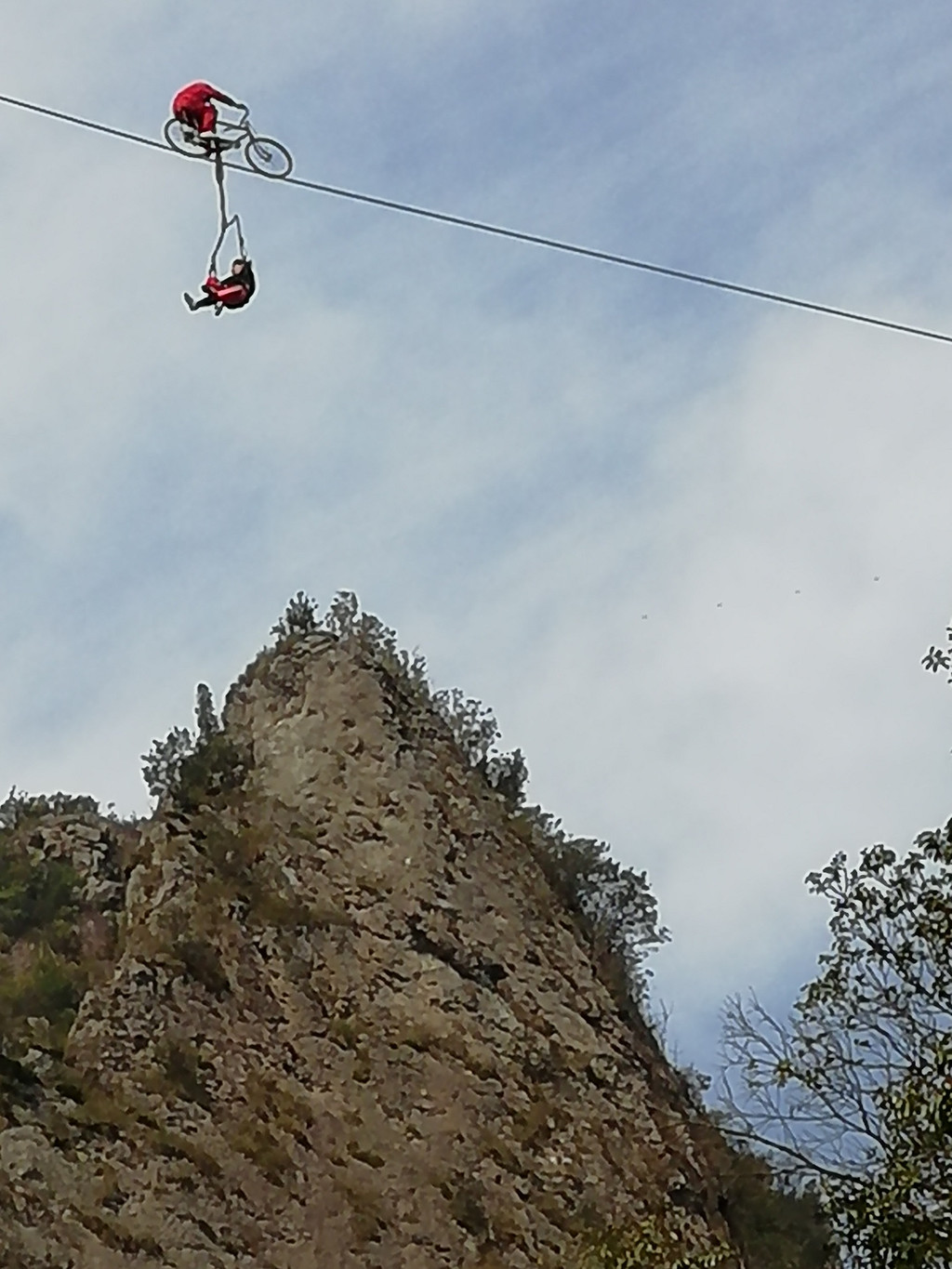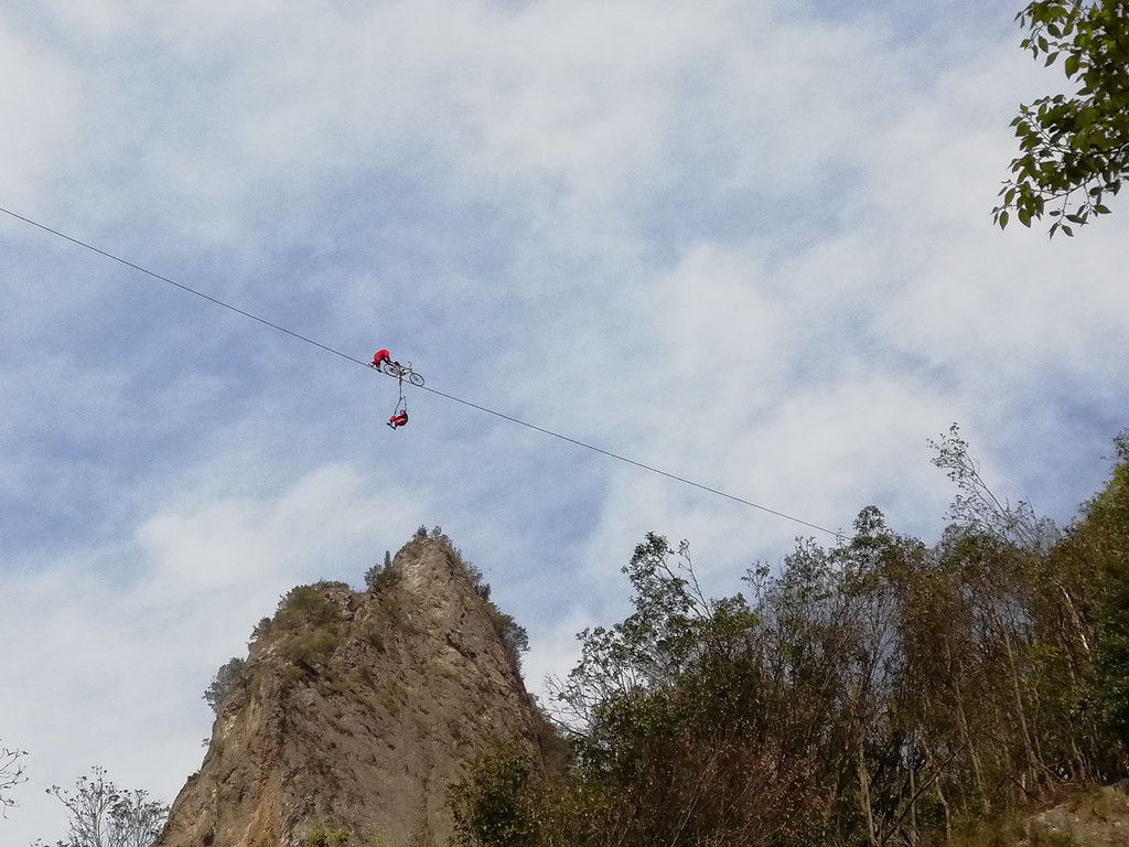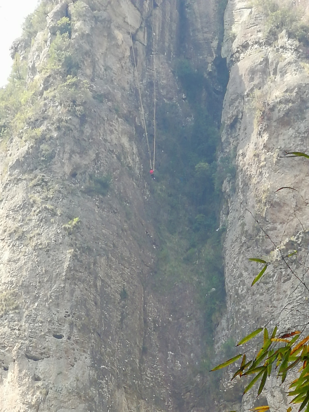 灵岩景区"灵岩飞渡"高空表演, 每天10:20开始风雨无阻。