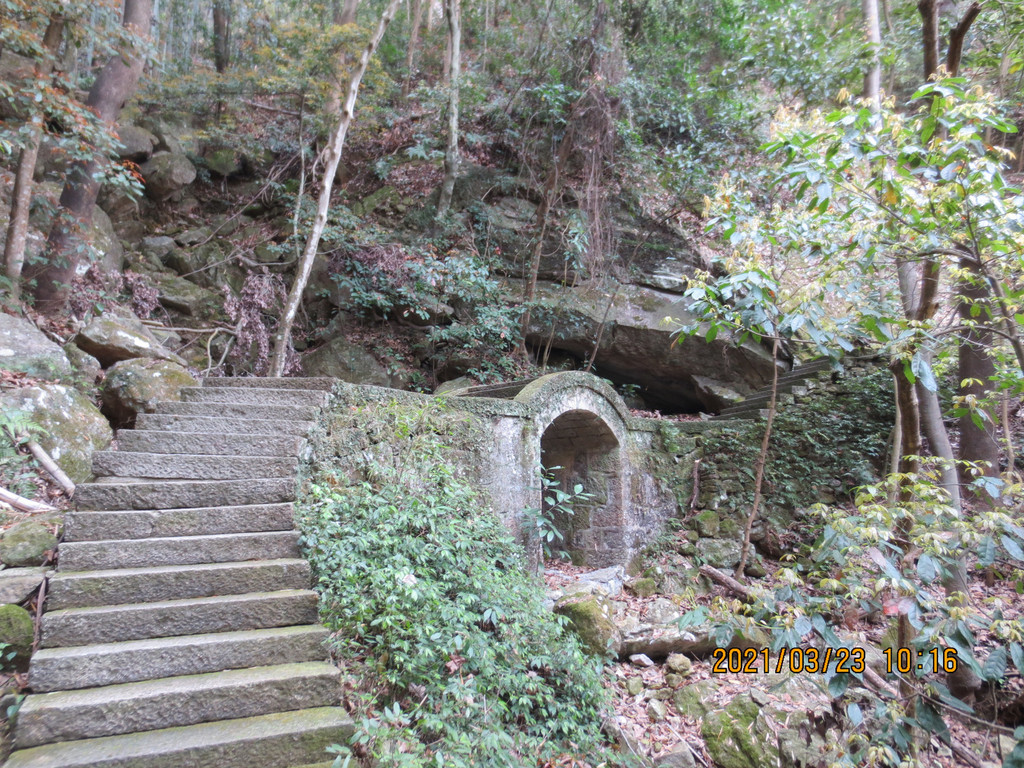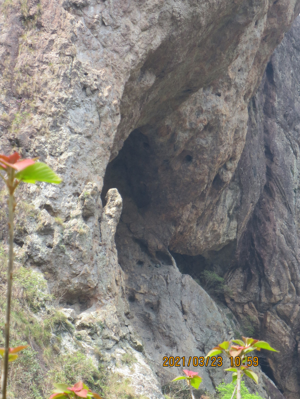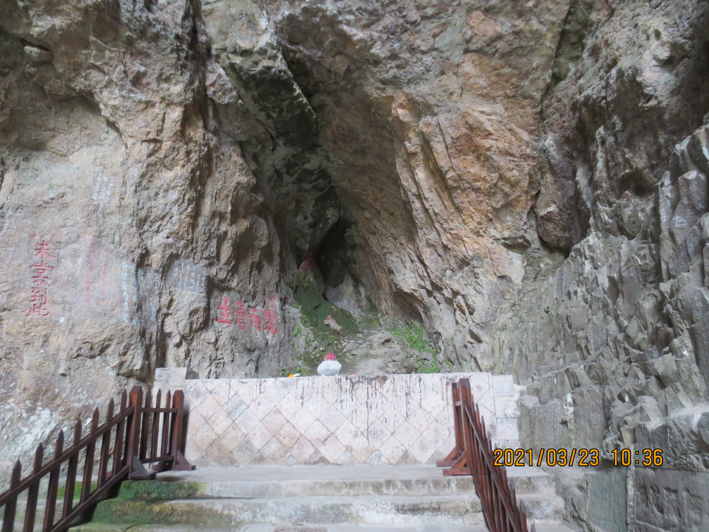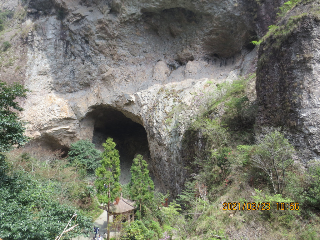 又名龙鼻龛,位于灵岩寺右侧的插龙峰下。可从寺后或寺旁的石蹬小路盘旋而上。洞口朝南,正对玉女峰。深宽各约10米,高约100米。紫黑色两壁顶端按合处,中嵌一条青铜色横石,鳞甲宛然,酷肖一条巨龙蜿蜒下绕,将至洞底,垂奏瓠,一爪据地,好像是保护颔中之珠。此洞崖碑刻特多,约有80多处,被称为“雁山石窟”,为文人墨客拜谒之地,洞中摩崖分布在两壁最上层,以唐贞元十年(794)包举题名为最早。宋刻中7处有纪年,13处有干支纪年或题名,其中“沈括”二字尤为珍贵。元代1处,明代23处,清以来9处。另有宋以来碑刻7通。洞口岭旁巨石上镌“天开图画”四个大字,为明代朱晦翁书。