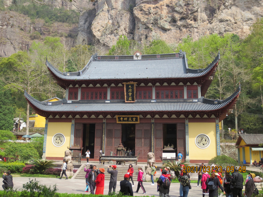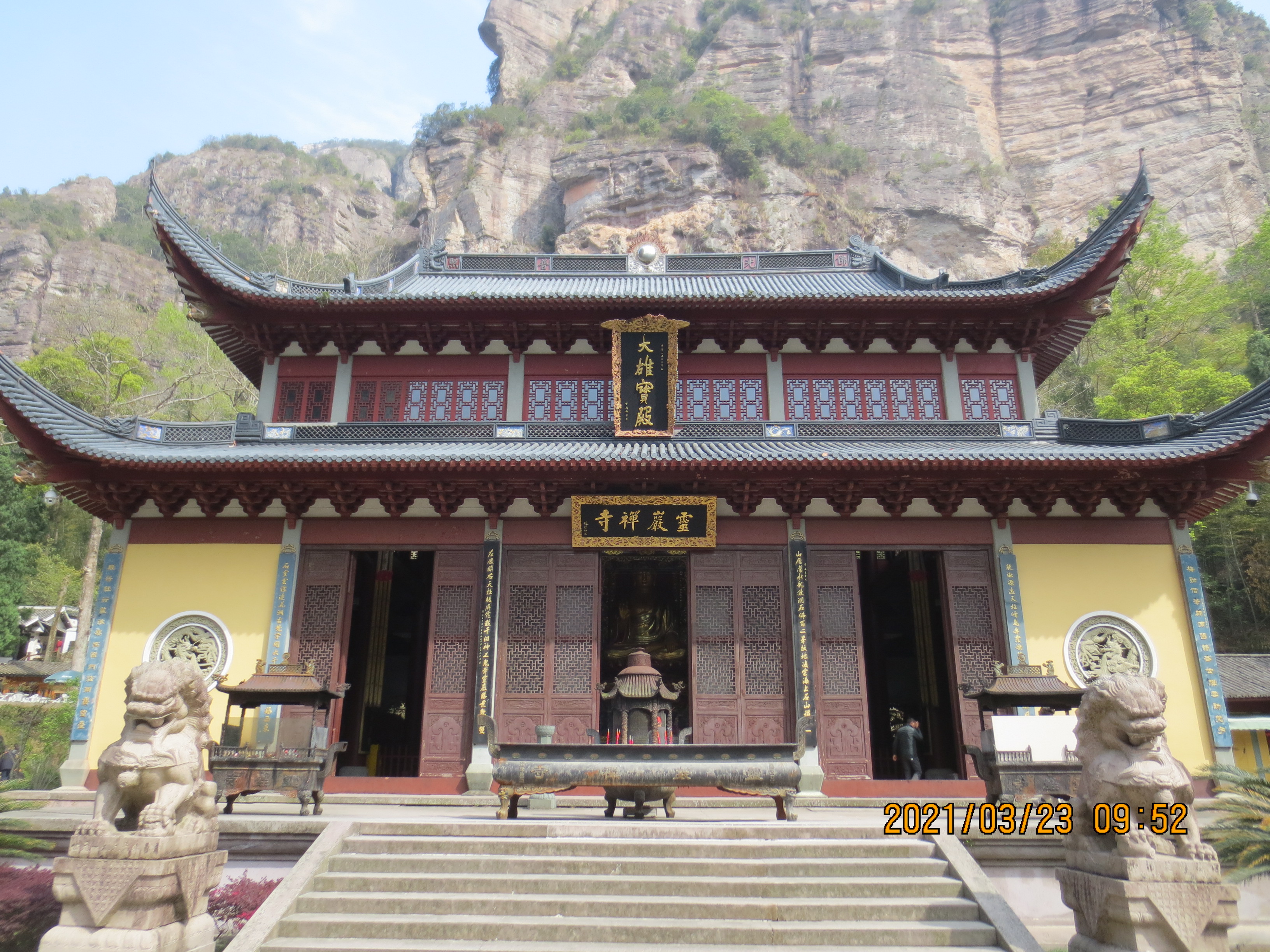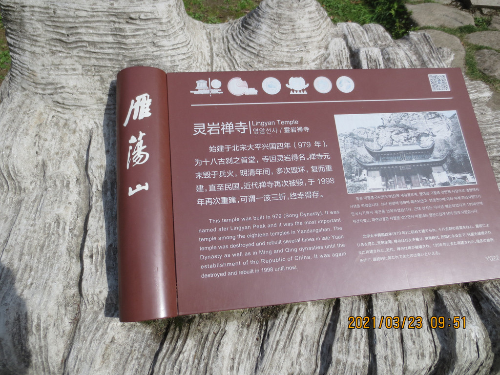 游览完大龙湫景区,在门口搭上景交车,往回走去灵岩景区,几分钟就到。