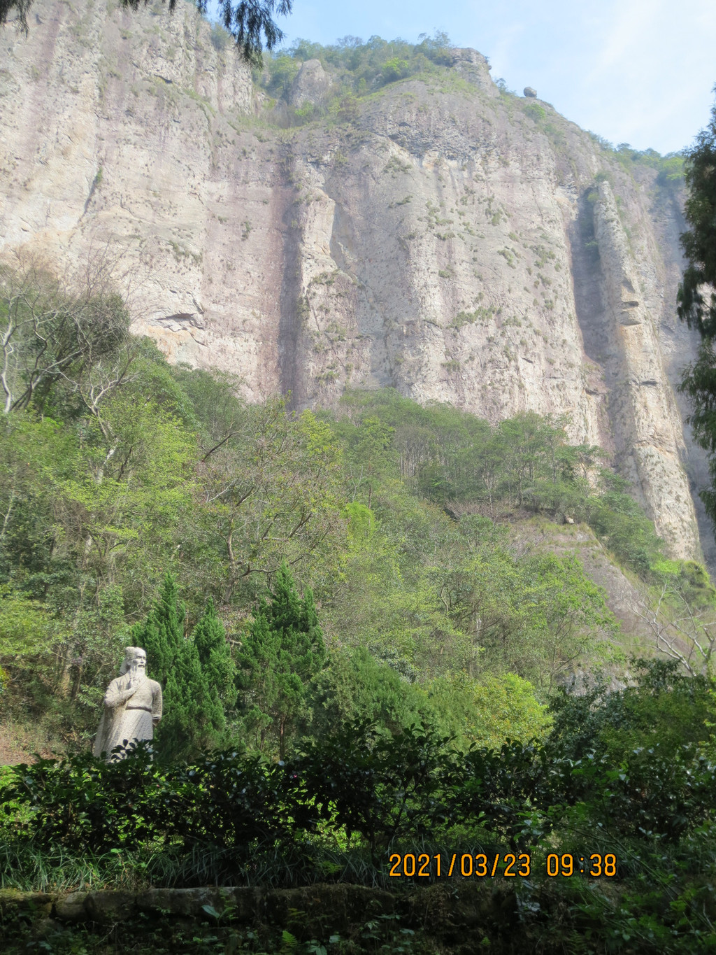 灵岩景区徐霞客塑像, 徐霞客一生三次游雁荡山,留下了二篇共计七千多字的游记,这在雁荡山历代旅游者中是独一无二的。二篇游记所记录的几次历险探索考察所得出的科学结论,以及传神的文学笔触对雁荡山风光的描写,都令后人对这位地理学家、游记文学家和探险家的徐霞客肃然起敬。