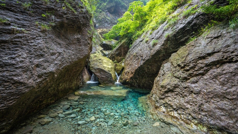 我们知道雁荡山位于有“东南山水甲天下”之誉的浙江温州,它以“山水奇秀”而蜚声中外,是温州唯一的5A景区,也是三山五岳中的“三山”之一,有“海上名山,寰中绝胜”之美誉。显胜门作为雁荡山著名的八大景区之一,一众“门”景之最,虽然不大,但却风姿绰约、景色超绝,这里青山碧水相映成画,自然人文和谐如诗,是雁荡山美丽的后花园。它位于雁荡的北部,处于三面环山的峡谷之中,放眼望去皆是奇峰异石、茂林修竹、幽潭碧溪,当年拍摄张纪中版《神雕侠侣》绝情谷片段,就是在此取的景,如今依旧有迹可循。沿着蜿蜒的山路,顺着曲折的清溪,便可领略这一寂静幽深的山谷秘境。