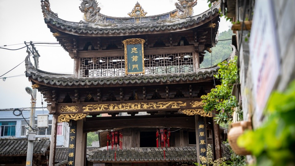 除了得天独厚的自然奇景,显胜门景区内还有雁荡少有的人文景观。其中最为壮观的当属雄伟古朴、肃穆庄严的南阁牌楼群。它位于通往显胜门入口公路边上的南阁古村。古村是章氏家族聚居之地,因出了以著名诤臣章纶为首的多名朝廷官员而蜚声遐迩。徐霞客当年也曾游历至此,并在其游记中对古村作了记载。南阁牌楼群原有七座,现仅存五座,分别为“世进士”、“恩光”、“方伯”、“尚书”和“会魁”,均为三山顶六柱单间式结构,自北而南依次排列,规模宏大、气势磅礴,它诉说着一个家族文化传承的故事,彰显着章氏百年间几代人的辉煌与荣耀。