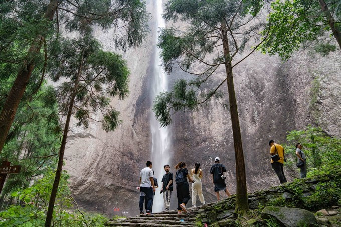 大龙湫景区可不单单只有一个瀑布,从大门到瀑布,中间这段景色也美不胜收。鸟语花香郁郁葱葱,还有小溪潺潺空气清新,真的是不是仙境胜似仙境,走累了还可以去小溪边坐坐,感受来自山间的风,来自溪中的水,非常惬意。
