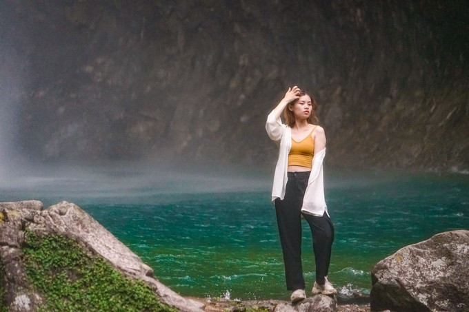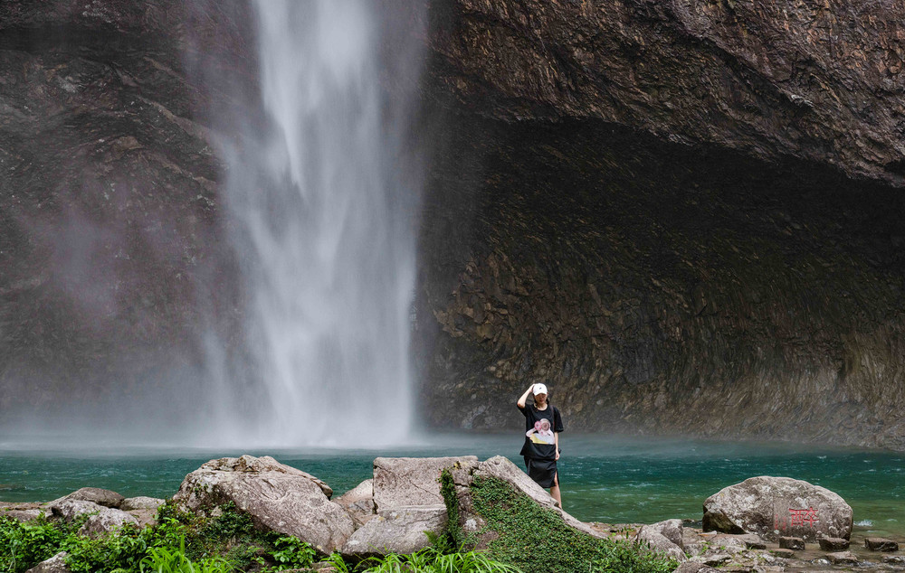 同行的小姐姐们争相去大龙湫前面打卡拍照,我心疼我的索尼A7R4相机和G大师24-70的镜头,打死都不敢走近拍,水汽太重了很容易受潮,再说镜头一会就被小水珠覆盖,拍什么都不清楚,远远拍才是正确的记录方式。