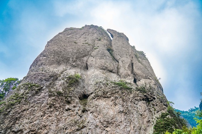 大龙湫景区同样有很多奇石怪峰,其中最引人注目的就是剪刀峰。剪刀峰远远就能看见,而且在不同方位看它,它有5种形态呈现,而最开始看到的剪刀峰反而最独特,就像一对很恩爱的情侣在拥吻,当时我就问了导游,这么像拥吻情侣的山峰怎么会取名叫剪刀峰呢?导游说有两个原因,第一个原因是因为徐霞客当时觉得像剪刀,所以给此山叫剪刀峰,估计徐霞客那个年代,男女之间的风气没那么 开化 ,夫妻都是举案齐眉,彬彬有礼,估计做出这种亲热拥吻举动的很少;而第二个原因是灵峰景区里有一个情人峰了,所以这座山叫剪刀峰。