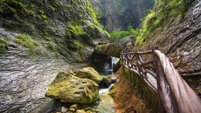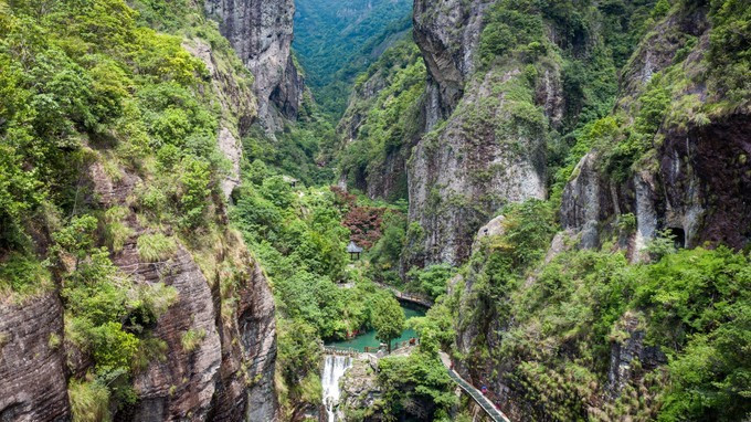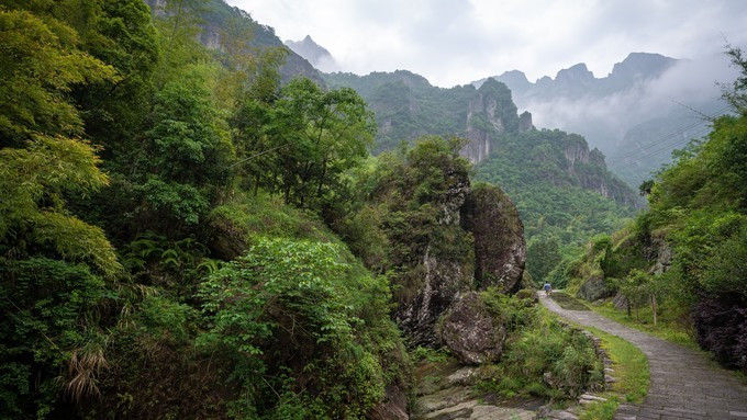 我们知道 雁荡山 位于有“东南山水甲天下”之誉的 浙江温州 ,它以“山水奇秀”而蜚声中外,是 温州 最早的5A景区,也是三山五岳中的“三山”之一,有“海上名山,寰中绝胜”之美誉。显胜门作为 雁荡山 著名的八大景区之一,一众“门”景之最,虽然不大,但却风姿绰约、景色超绝,这里青山碧水相映成画,自然人文和谐如诗,是 雁荡山 美丽的后花园。它位于雁荡的北部,处于三面环山的峡谷之中,放眼望去皆是奇峰异石、茂林修竹、幽潭碧溪,当年拍摄张纪中版《神雕侠侣》绝情谷片段,就是在此取的景,如今依旧有迹可循。沿着蜿蜒的山路,顺着曲折的清溪,便可领略这一寂静幽深的山谷秘境。