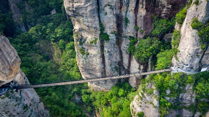 方洞景区,之所以被称之为 雁荡山 最为“险峻”的景区,还是因为其境内的一座架设在悬崖峭壁之间,宛若一条腾飞的巨龙凌空跨涧而过的悬空吊桥。国内各大山岳景观兴起的玻璃桥以及玻璃吊桥,早已经让我们司空见惯,在 雁荡山 这绝壁中架起的百余米悬空吊桥可谓是更加特立独行,对于很多游客来说这也一个巨大的挑战。