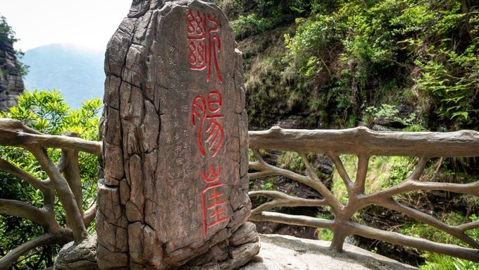 三折瀑是 雁荡山 驰名中外的自然景观,系同一山溪水南向三越重岩而成,形成上、中、下三个飞瀑,一瀑三折,奇雄险秀,堪称天下无双。郭沫若先生的“我爱中折瀑”题词,不仅表达了他对三折瀑的喜爱之情,也让其声名斐然。其中下折瀑位于景区入口不远处,乍看之下反倒是觉得民国时镌刻的“下折瀑”三个大字更具气势,不过水帘从峭壁上跌落而下,溅起一片水汽,让人有种如入仙境之感。