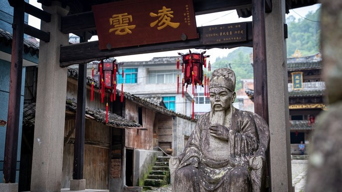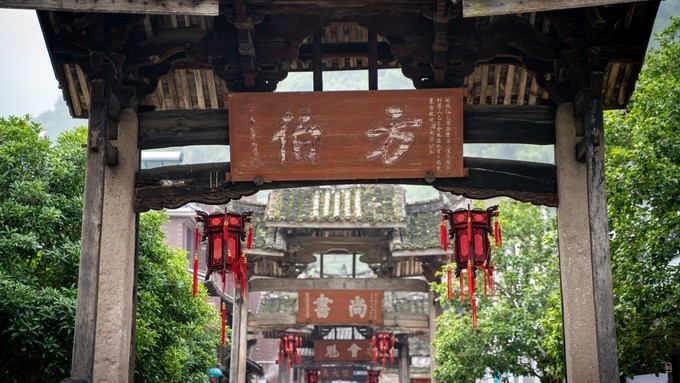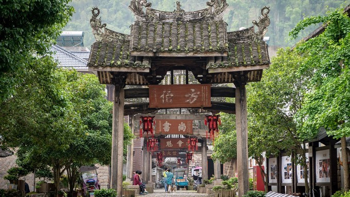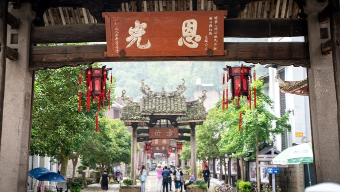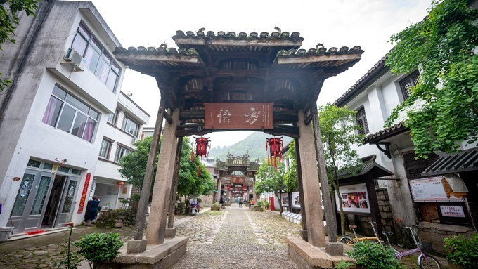 走进南阁之前,你会被村外这个背靠巍巍青山,面朝潺潺秀水,仿若浑然天成的水墨风景画一般的环境所吸引,但当你真正走进古村,你就会被眼前那一望千年的历史沉淀所惊艳。曲折迂回的街巷,爬满苔藓的垒石墙,老式的烟囱与房屋,这里的每一处痕迹,都透露着古韵遗风,诉说着历史变迁,哪怕是最不起眼的脚下铺路的鹅卵石,都能渗透出耐人寻味的故事。村内历史遗存丰富,文物古迹众多,主要有牌楼群、笃忠堂、尚书第、洗砚池、章纶墓等,其中当以牌楼群最为壮观。