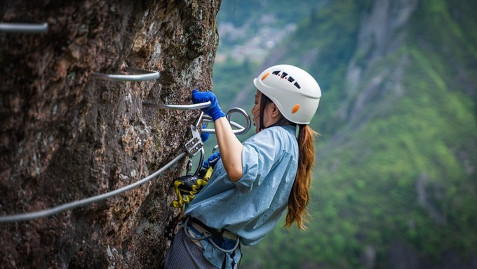 项目根据挑战的难度及线路的长短,主要分为A、B、C三条攀爬路线。A线长423米,起步就是垂直攀爬,适合体能和毅力都非常好的游客去挑战,也是三条线路中难度最高的。相较于A线,长900米起步平缓的B线则显得更为大众化,由于没有过于专业的技术要求,游客可以在欣赏美景的同时顺便满足一下自己的攀岩梦想。如果你对前面两条线路难以抉择,也不用担心,可以在仅有70米的C线试玩一下再做选择。