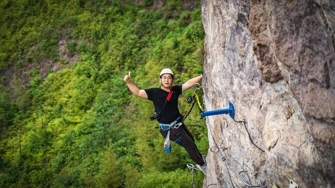 沓屏峰,可谓是龙 西乡 的标志,千百年来,人们只能仰视它,却没有人能征服它。 雁荡山 飞拉达项目的开发,激发了人们对这座险秀峰峦未知的探寻。由于项目降低了对攀爬者的专业技术要求,使其成为一项全民均可参与的极限运动,游客从沓屏峰底部出发,曲折迂回、节节攀升,在体验野外攀岩惊险刺激的同时,还可感受恰如诗仙笔下“脚著谢公屐,身登青云梯。半壁见海日,空中闻天鸡”的唯美意境。如果你也想实现自己追逐攀岩激情的梦想,不妨去 雁荡山 飞拉达景区试一试。