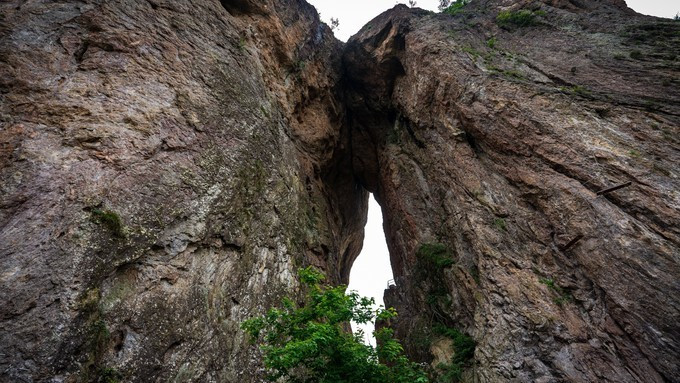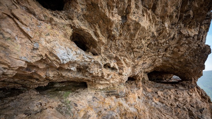 和 雁荡山 其他景区不同的是,当我们进入方洞景区之后,首先引入眼帘便是一条长1100米栈道。这些沿天然岩层开凿而成栈道不只是为了方便游客游客,更像是一本地理科普的书籍。高300余米岩嶂中间,横贯一条金黄色的近水平岩层,沿此岩层开凿栈道。从地质来讲,这一条长1100米的栈道,恰恰揭示了火山爆发形成凝灰岩与火山喷溢流纹岩层之间关系的大型断面,此处也是直观 雁荡山 火山第三期爆发的火山碎屑岩最佳处,为科学价值与美学价值完美的结合。所以说步入方洞栈道仿佛打开了一本地理科普书籍。