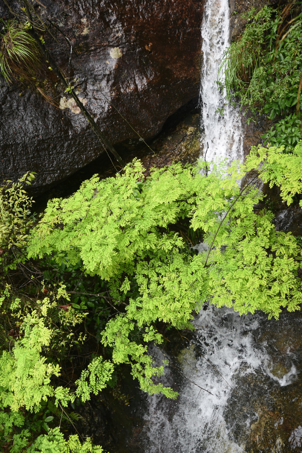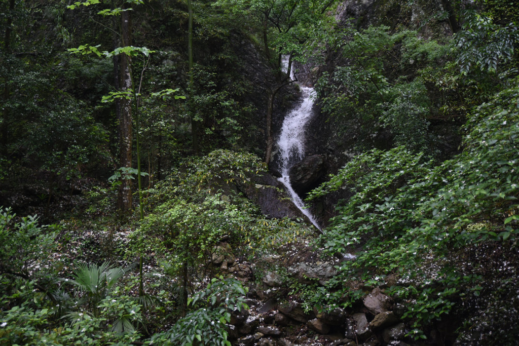 西北面半山腰悬崖岩中,有一条如少女般羞涩的瀑布藏在深处,瀑布从山涧飘落而下,水声很有节奏感,好像一首美妙乐曲,清脆悦耳……
