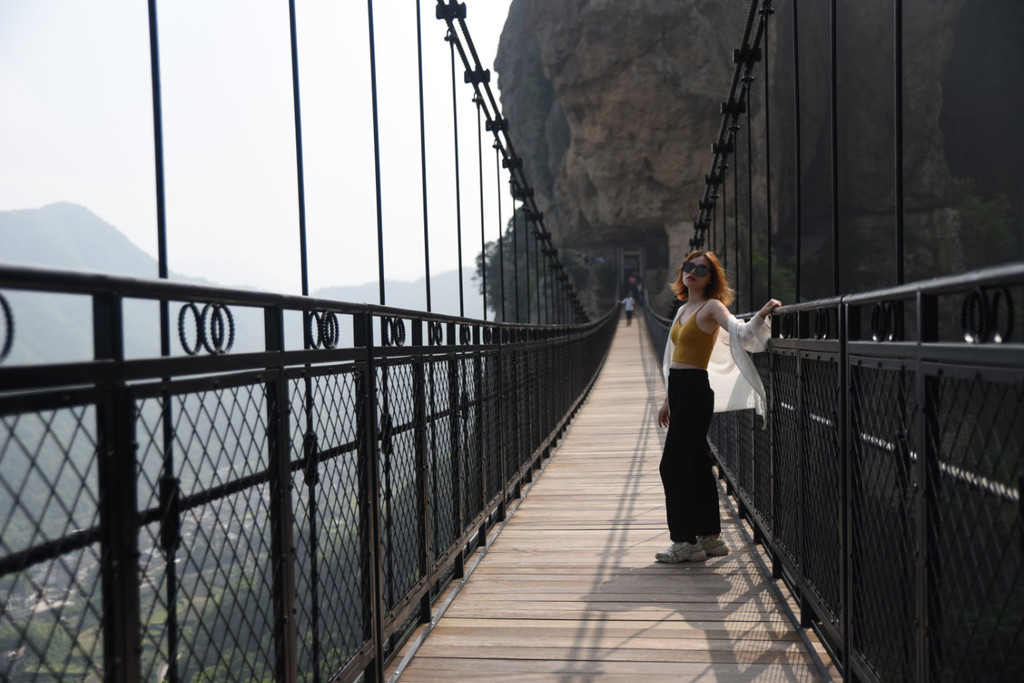 方洞的天空之桥是雁荡山的新三绝之一,极具观赏特色。天空之桥全长约100多米,离地有200米高,建于两个悬崖之间,立于桥上能远眺整个雁荡山景色,既让人心惊胆颤又能体验与众不同的视觉景观。