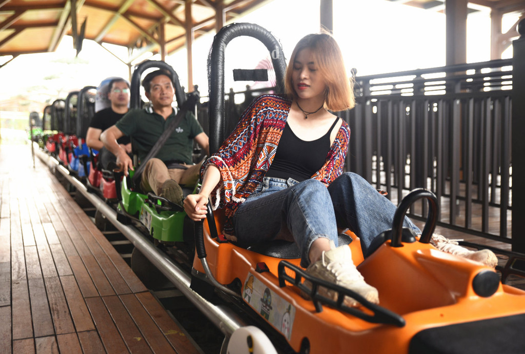 在铁定溜溜,我们用身心去感受这里的每一处娱乐项目,尤其是体验亚洲最长虎溜溜,真的玩的太开心了!这个项目也是整个园区最刺激何最具代表行的娱乐项目。到了铁定溜溜,一定要体验一哈。