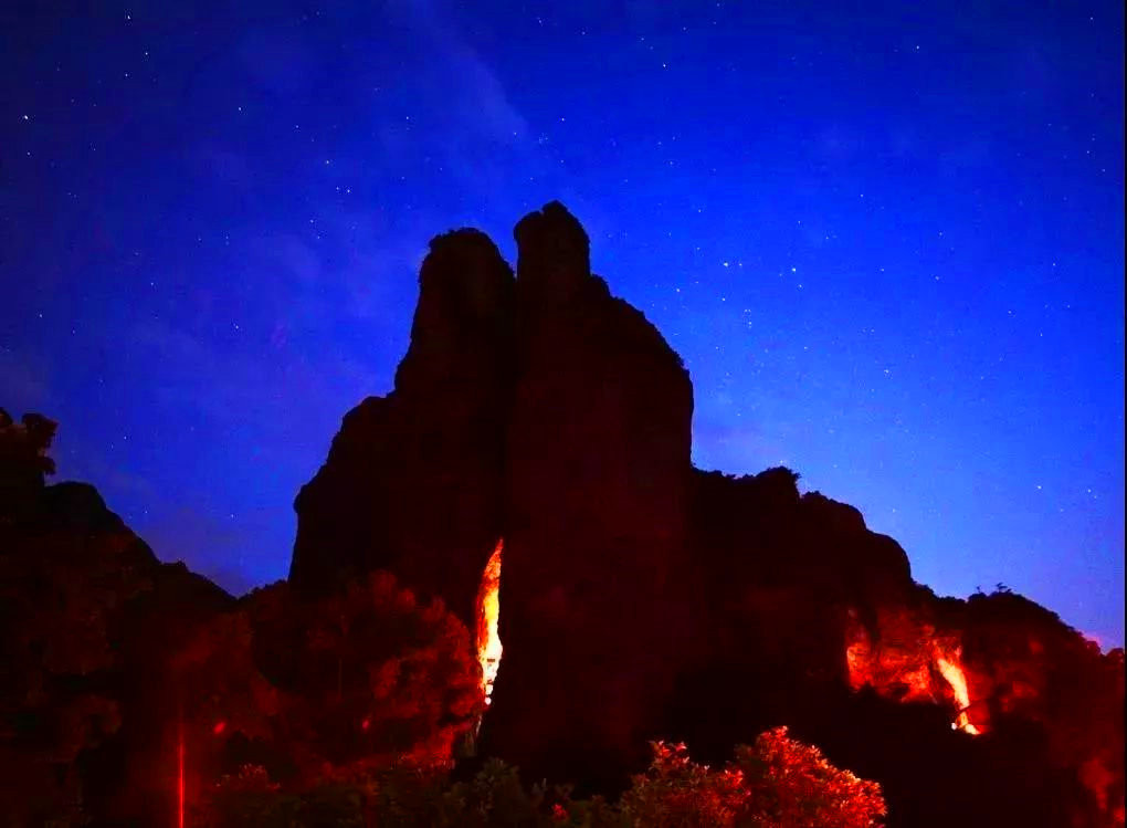形态各异的奇峰怪石在夜晚月光和映衬下,犹如涂上了神秘而温馨的色彩,构成了一幅幅线条鲜明的泼墨画。