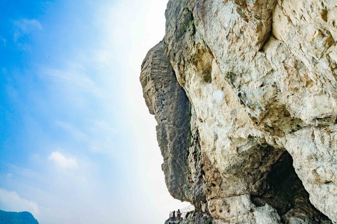 方洞景区是建在悬崖峭壁上的,在峭壁上凿开了一条路,走在上面,觉得够惊险的,有种走在天空中的感觉。特别是走在悬崖与悬崖中的吊桥时,颇有些惊心动魄,遇到调皮的游客再晃两下桥身,那就绝对获得阵阵女游客的尖叫声。当然,安全系数百分百,这吊桥很牢固,害怕的话快速通过即可。
