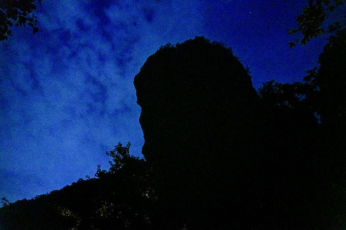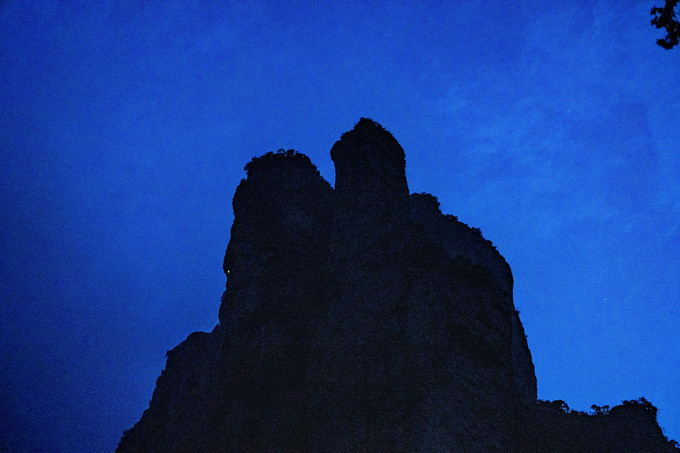 雁荡山 有句名谣:"牛眠灵峰静,夫妻(情侣)月下恋,牧童偷偷看,婆婆羞转脸"。这四句话是夜景总概括。这些绝美夜景是60年代大文豪郭沫若先生在灵峰饭店住宿时,傍晚酒足饭饱后摇摇晃晃地出了门囗,突然头一倒仰,见到了此景,便诗兴大发,挥笔写道:"雄鹰踞奇峰,清晨化为石。待到黄昏后,雄鹰看又活"。其实"雄鹰"就是灵峰。
