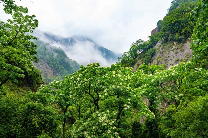 三折瀑景区,哇,爆美,特别是这个时候,去瀑布的路上,5月桐花盛开,简直美瞎了眼睛。那一簇簇一丛丛的小白花,挂在被雨水洗涤过的青翠枝头,还娇嫩地吐着粉色的花蕊,让人情不自禁地变得温柔起来,那一颗浮躁的心瞬间获得了安宁。