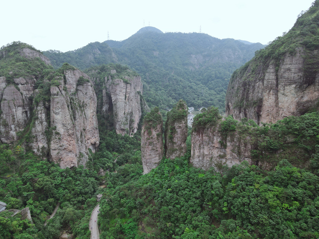300多米高的沓屏峰巍峨耸立,直冲云天,一峰独出,壁立千仞,万峰伏首,唯这种孤高才使登临者产生"目空一切"的震撼。在刺激攀爬的过程中,极目远眺,雁荡美景尽收眼底。