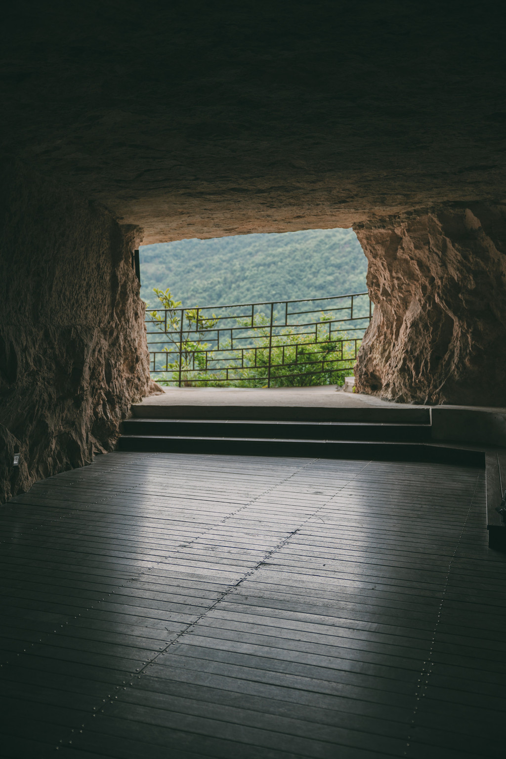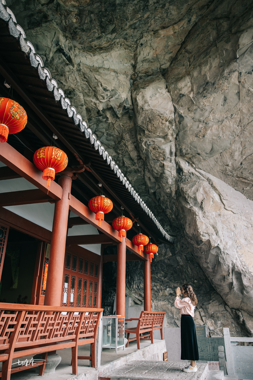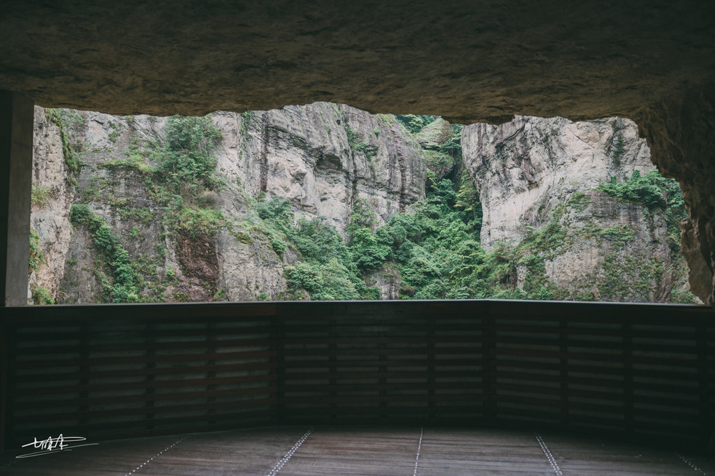 聚仙阁有一给很大的空间,方正的形状,像是人工从岩石中开凿出来的。站在阁里透过若大一个石门,向西眺望,就可以看到仙人聚集的地方,让你一饱眼福——真是人间仙境。