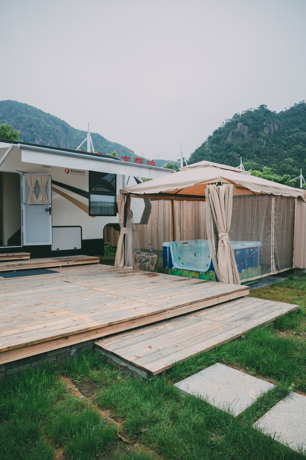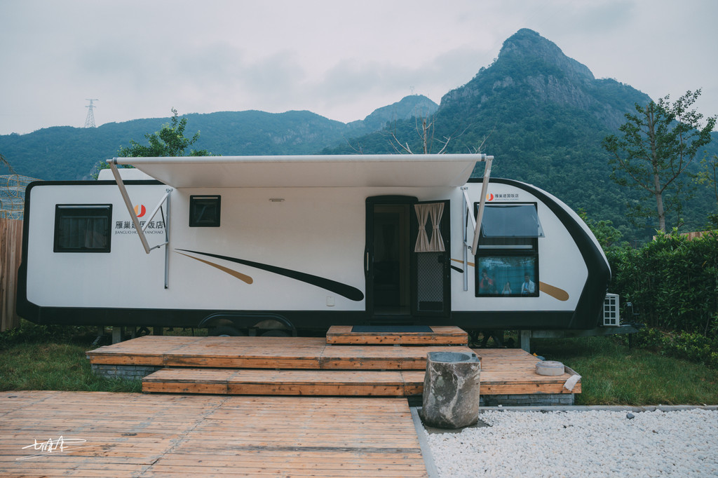 雁荡山旅行,发现这里时髦的打卡地真不少,雁荡山建国度假酒店房车露营地就是新晋网红打卡地,地理位置得天独厚,被青山绿水环绕。