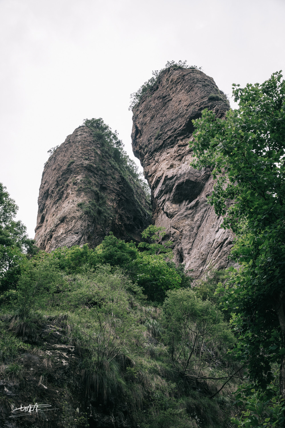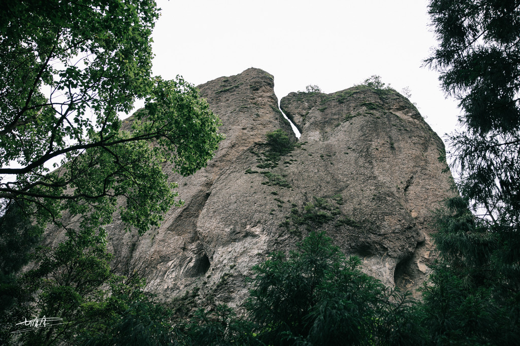 一峰耸立,上分为二,似两股略开口的蟹螫,看去又像一把大剪刀。移步换景,变化极多,不同位置给你的景色也不一样,啄木鸟、鳄鱼、熊岩、桅杆峰、展旗峰、春笋峰......真正应了诗中那句“横看成岭侧成峰,远近高低皆不同”。