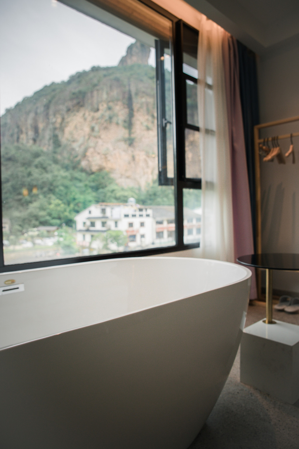 房型共分为三种,山景大床房和景观双床房有面山和背山两个朝向,面山房正对灵峰,180度无死角全天候观赏山景,无差别日照普射。我入住的是景观大床房,坐在窗口就能看到外面的花海和远处的山,视野真的很好。