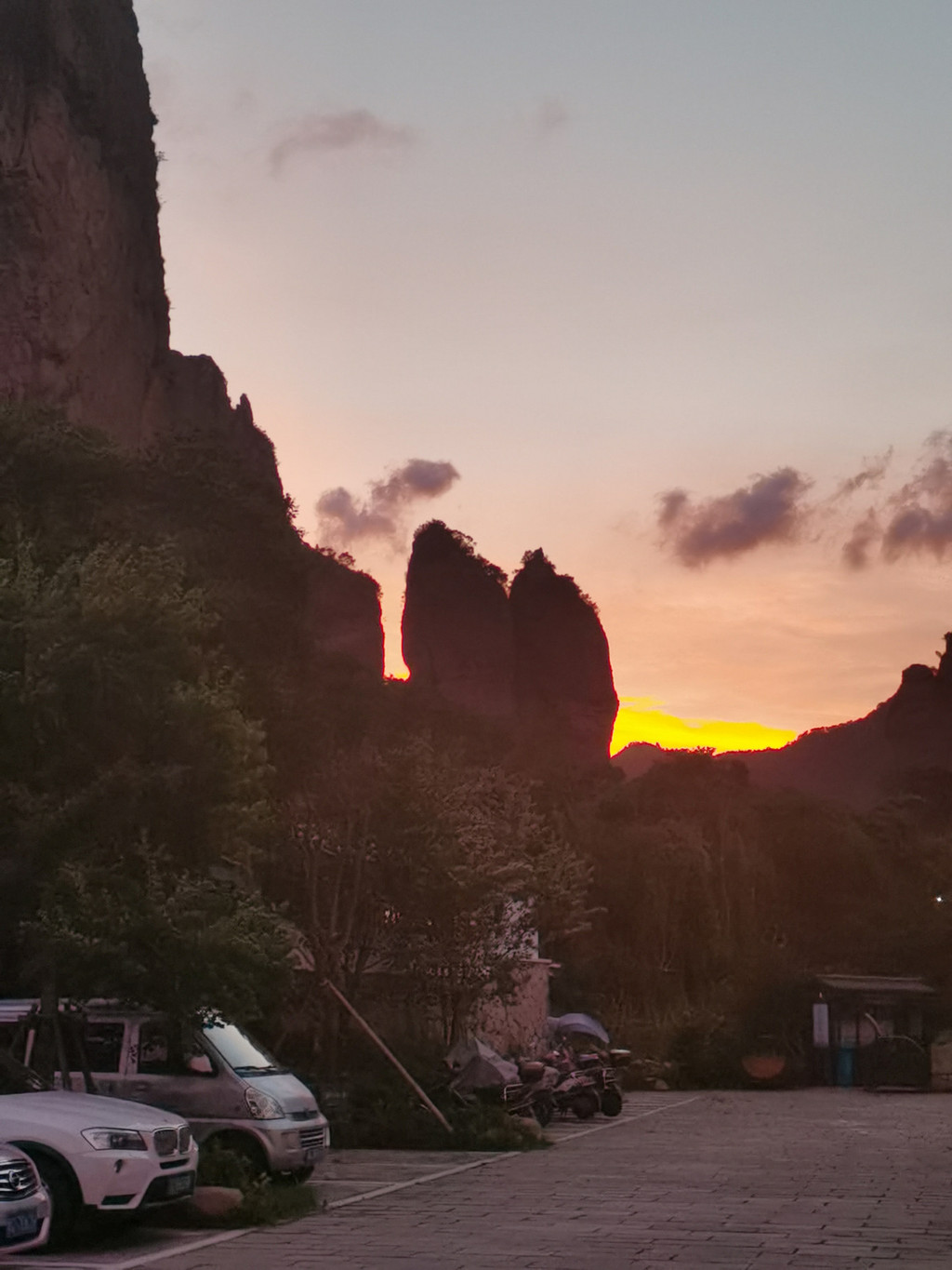 当晚去了灵峰夜景,直接步行前往大约20分钟的样子,这边门票直接在网上买的200一人的联票,之后的每个景点直接刷脸进入,还挺方便。一路上天色渐暗,夜景看的是山影,像与不像全在导游的讲解和你自己的想象,我认为看一遍还是值的,但是建议游灵峰先看夜景,这样对日景也能有期待。走一遍大概也就半小时的样子。