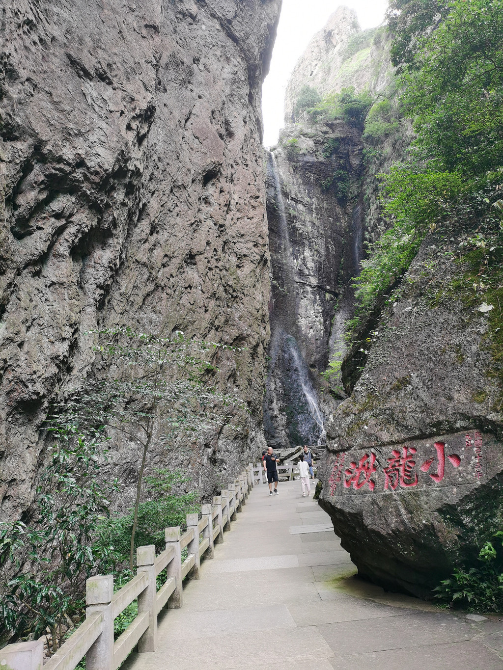 第二天前往大龙湫瀑布,值得一提的是景区的公交是免费的,上车司机会问你去哪里,让你带好口罩(疫情期间的优惠吧,之前做攻略时查到40一人一天)。大龙湫离灵峰景区是较远的,大巴开了约半小时。景区的路不难爬,从入口大约走了半小时就到了瀑布,整个瀑布给笔者的感觉就是走进了武侠小说里的场景。